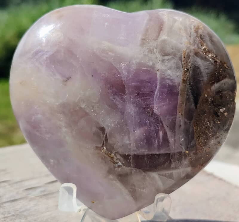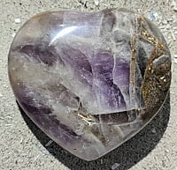 Cheveron Amethyst Heart with lodelite inclusions 99mm $38