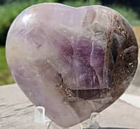 HT1005 Cheveron Amethyst Heart with lodelite inclusions 99mm $38