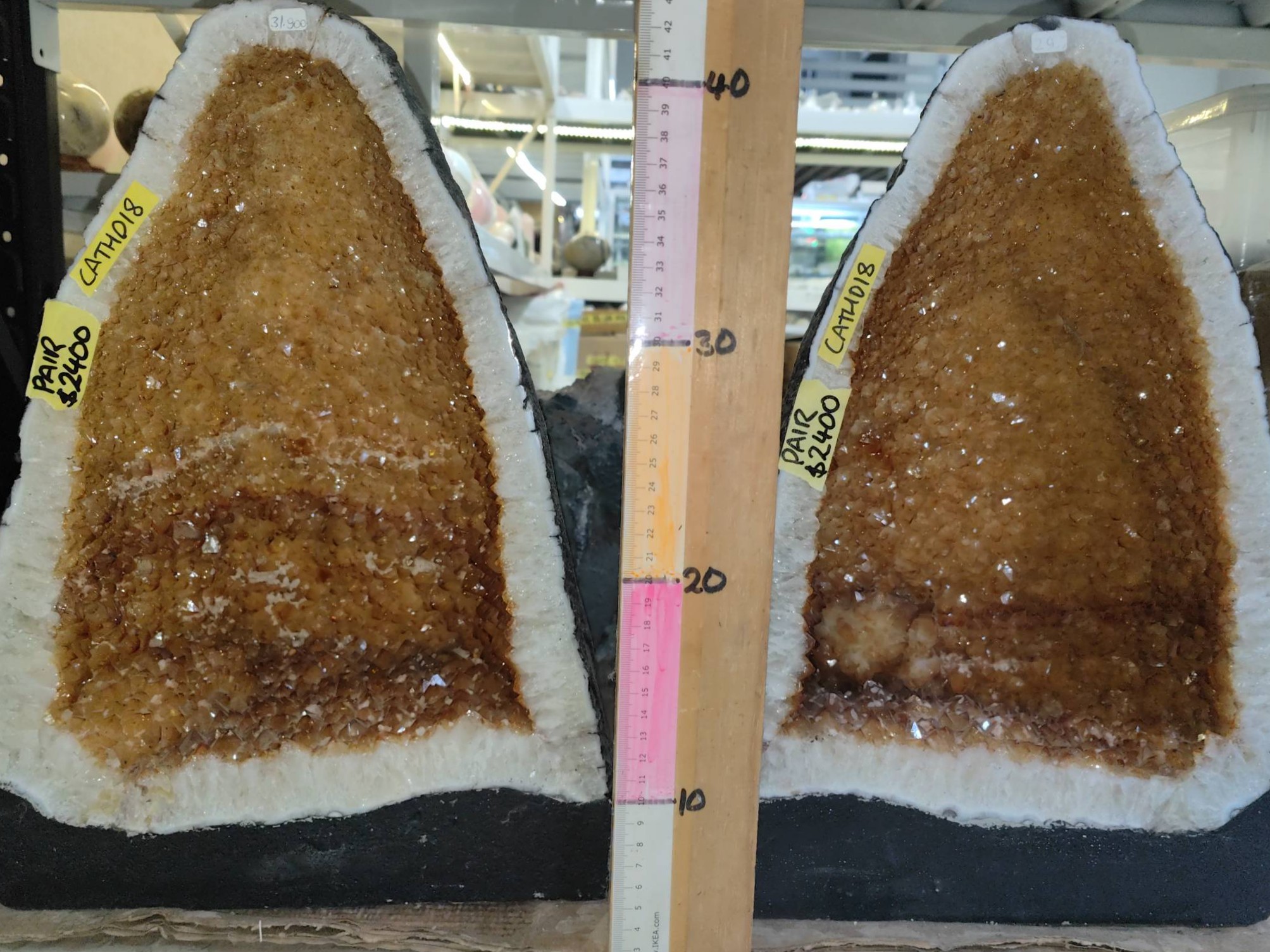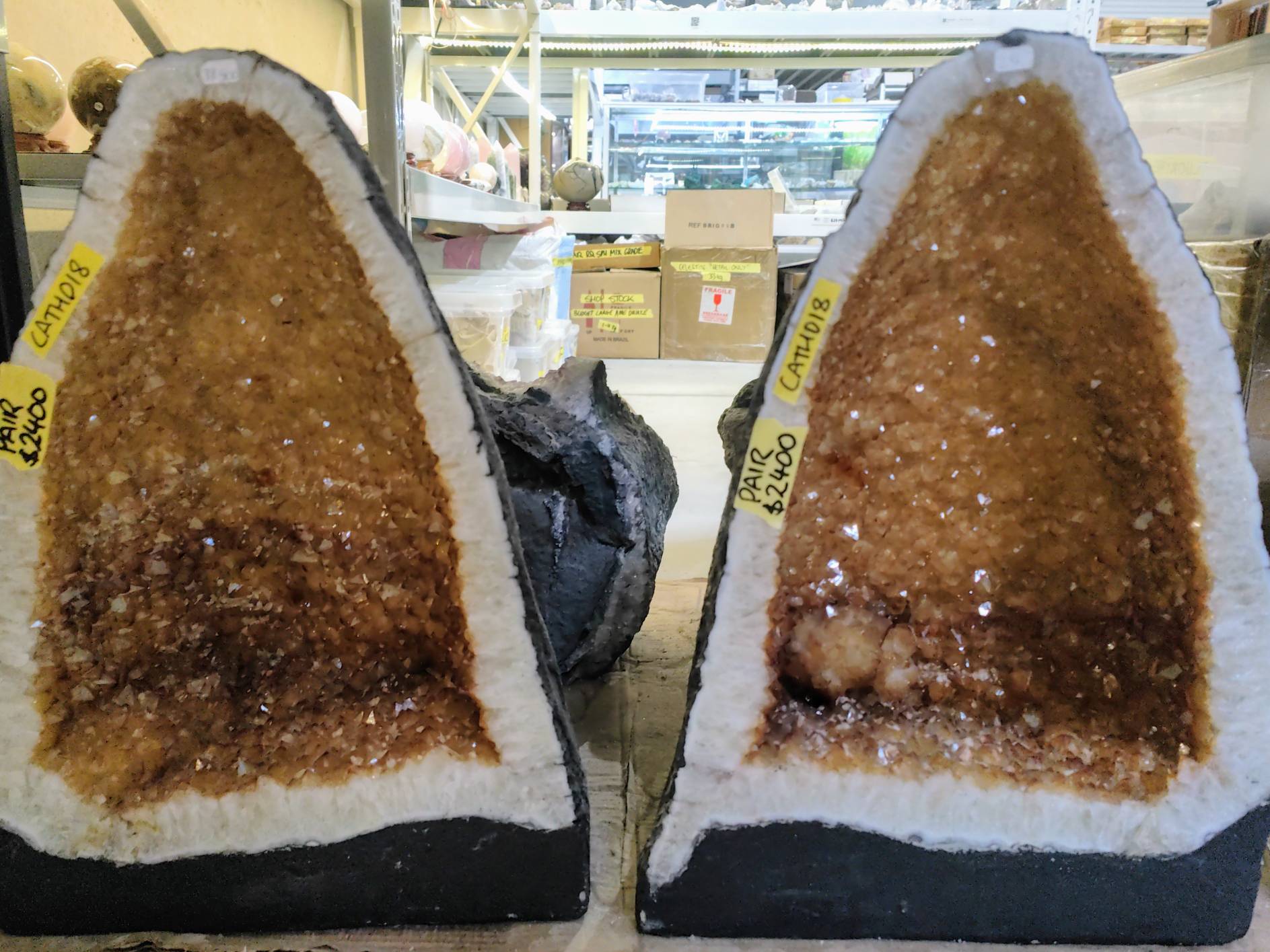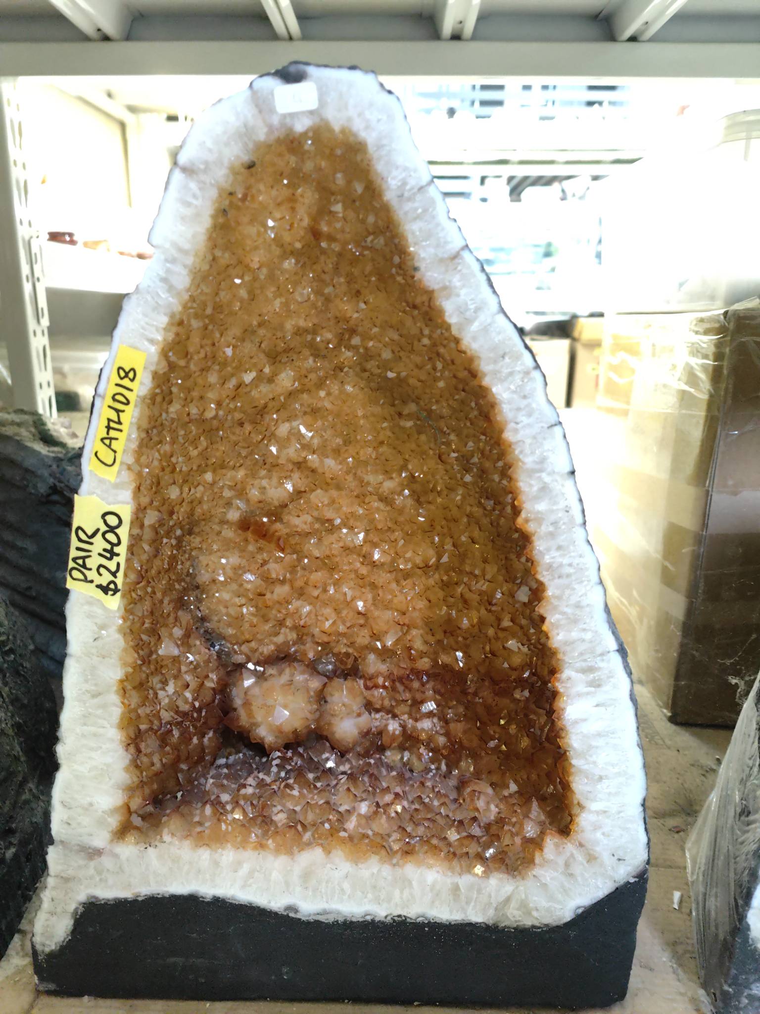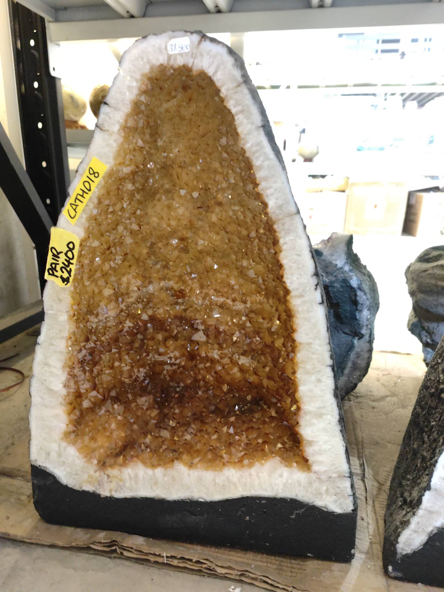 CATH018 61.4kg Traditional Citrine Geode/Cathedral pair, A pair of large open caves with great coloured crystals These are the two halves of a geode 43x31 and 44x31cm $2400pair