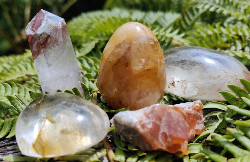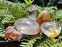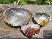 SET26 Iron Quartz/ Golden Healer set; 54mm egg, 46mm heart, 60mm tower, 48mm hematite quartz, 74mm imperfect polished. WAS $40 Now $25