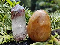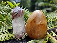 Iron Quartz/ Golden Healer set; 54mm egg, 46mm heart, 60mm tower, 48mm hematite quartz, 74mm imperfect polished. WAS $60 Now $50