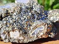 SPEC1025 Stunning pyrite on quartz from El Hammam, Morocco. 96mm $58