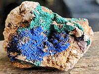 NAT1029 Azurite and malachite on matrix from Morocco. 55mm $22