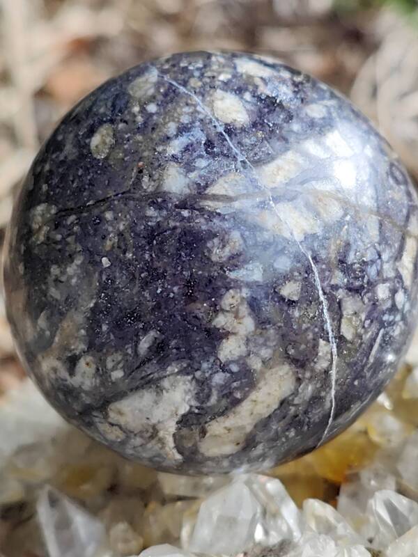 SPH1024 Inkspill Sphere (brecciated granite with Fluorite infill) 52mm $27