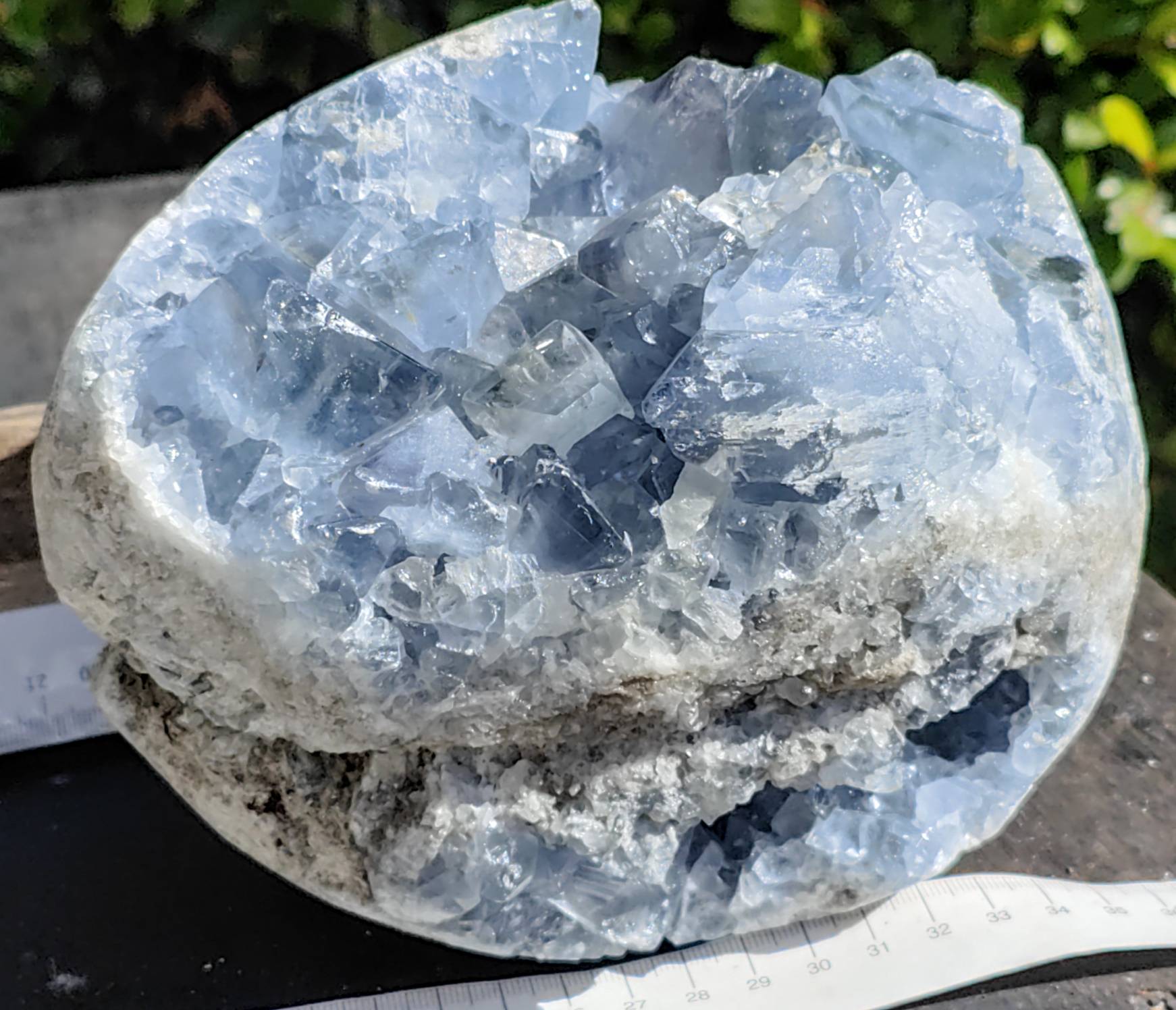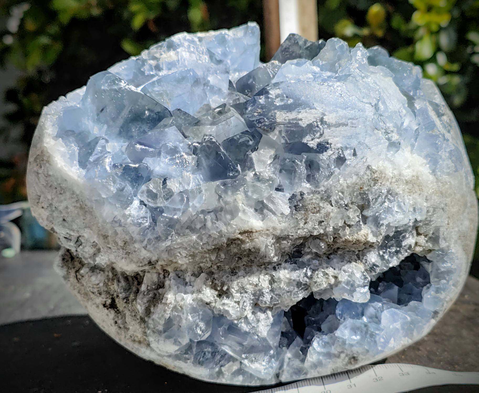 XL1036 Very large 6.59kg celestite, this piece has multiple patched of crystals 18x14x15cm $320