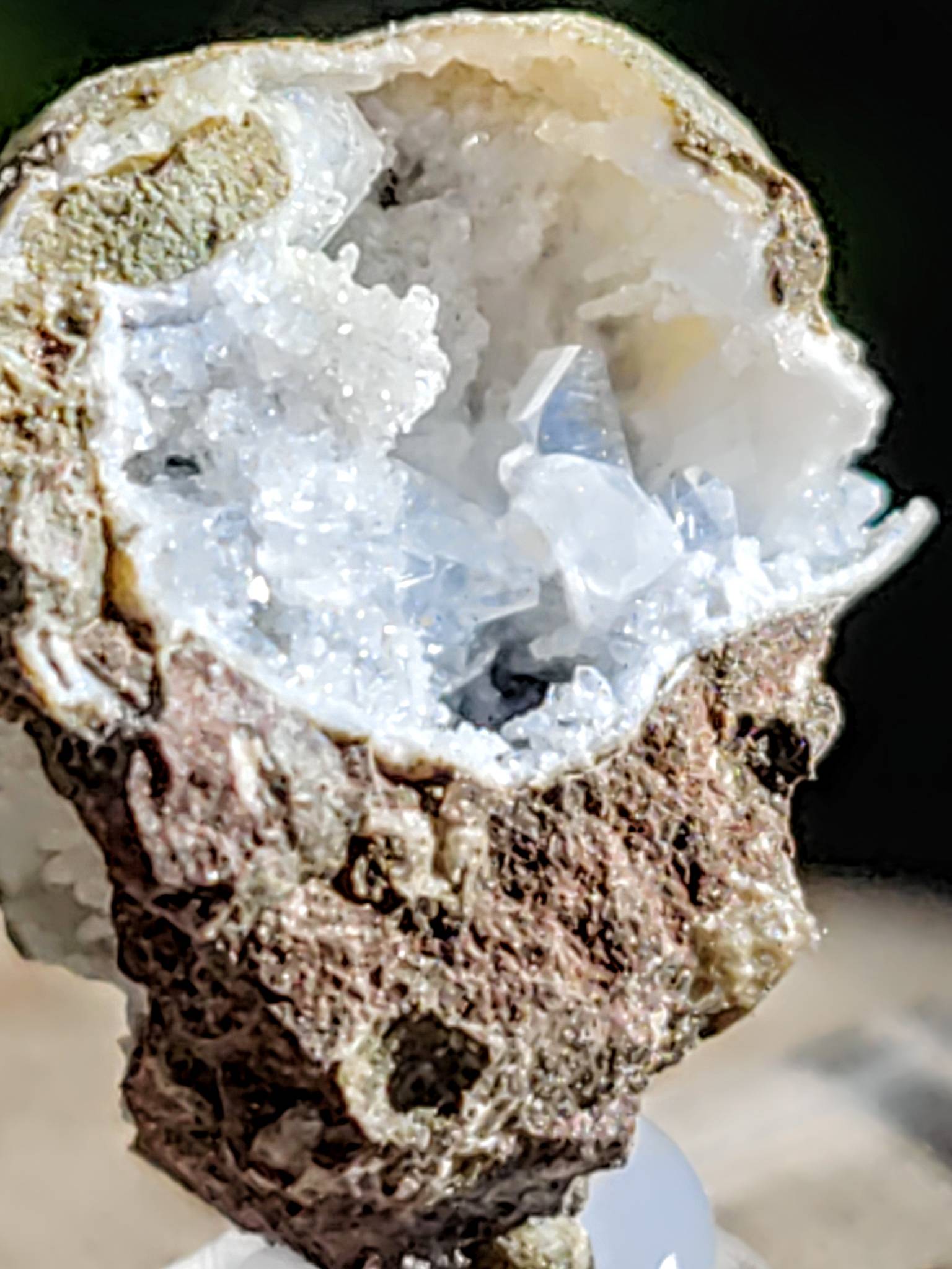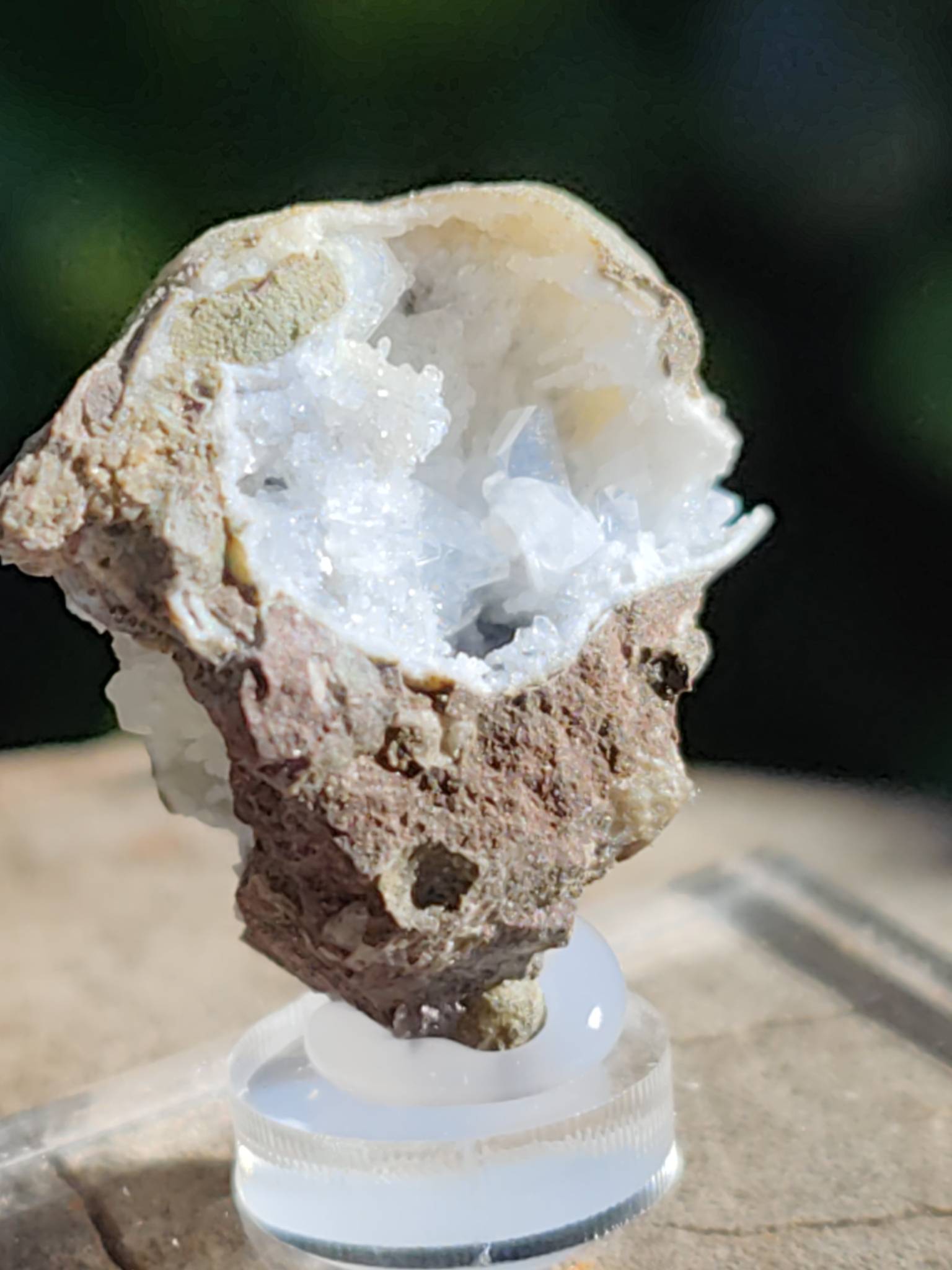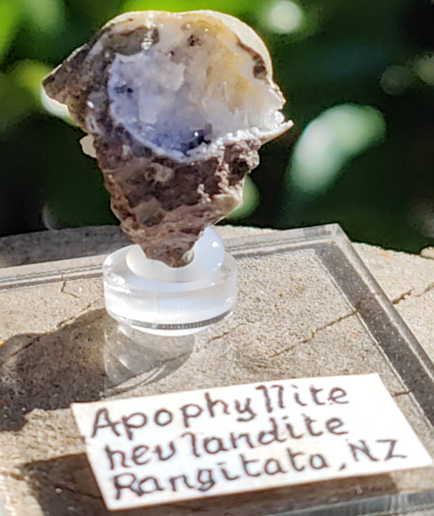 Mount042 Mini cave with Apophyllite and heulandite from Rangitata New Zealand 17mm mounted on 33mm base $15