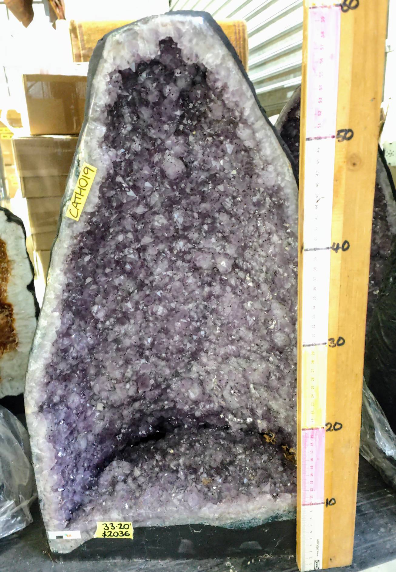 CATH019 33.2kg Amethyst Geode/Cathedral A high quality catheral with good colour and crystals. Thin walls so is very light for its size. 61cm tall x 35cm wide $2036