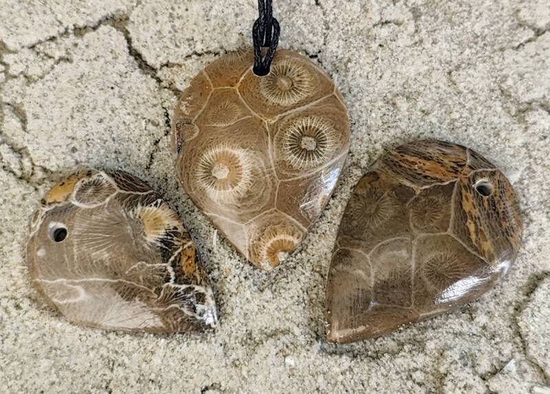 On cord to make it into a pendant. Sample pictures. We'll choose you something pretty! polished Rugosa coral These became extinct along with the dinosaurs 66mya