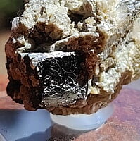 Mount079 Ferberite crystal in siderite, Panasquiera, Portugal 32mm $20