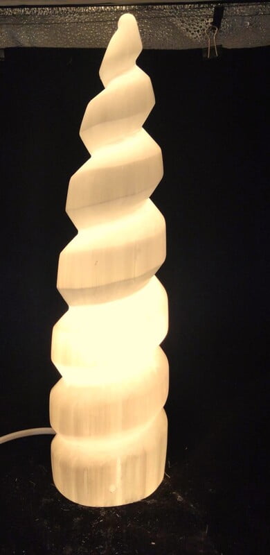 30cm Selenite Crystal Lamp, Spiral Unicorn Horn