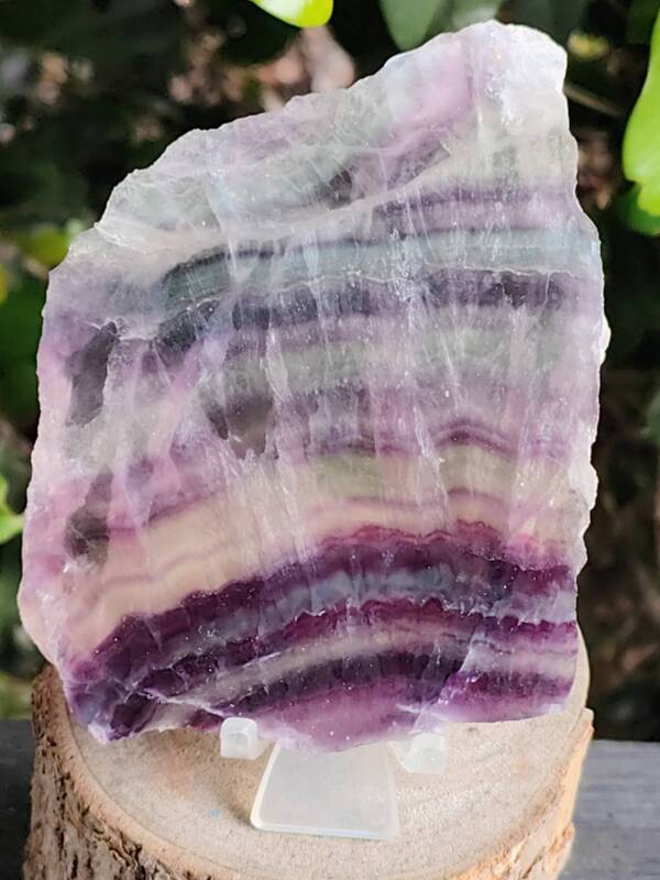 NAT1016 Banded fluorite slice with a mix of clearly defined colours. 106mm $19