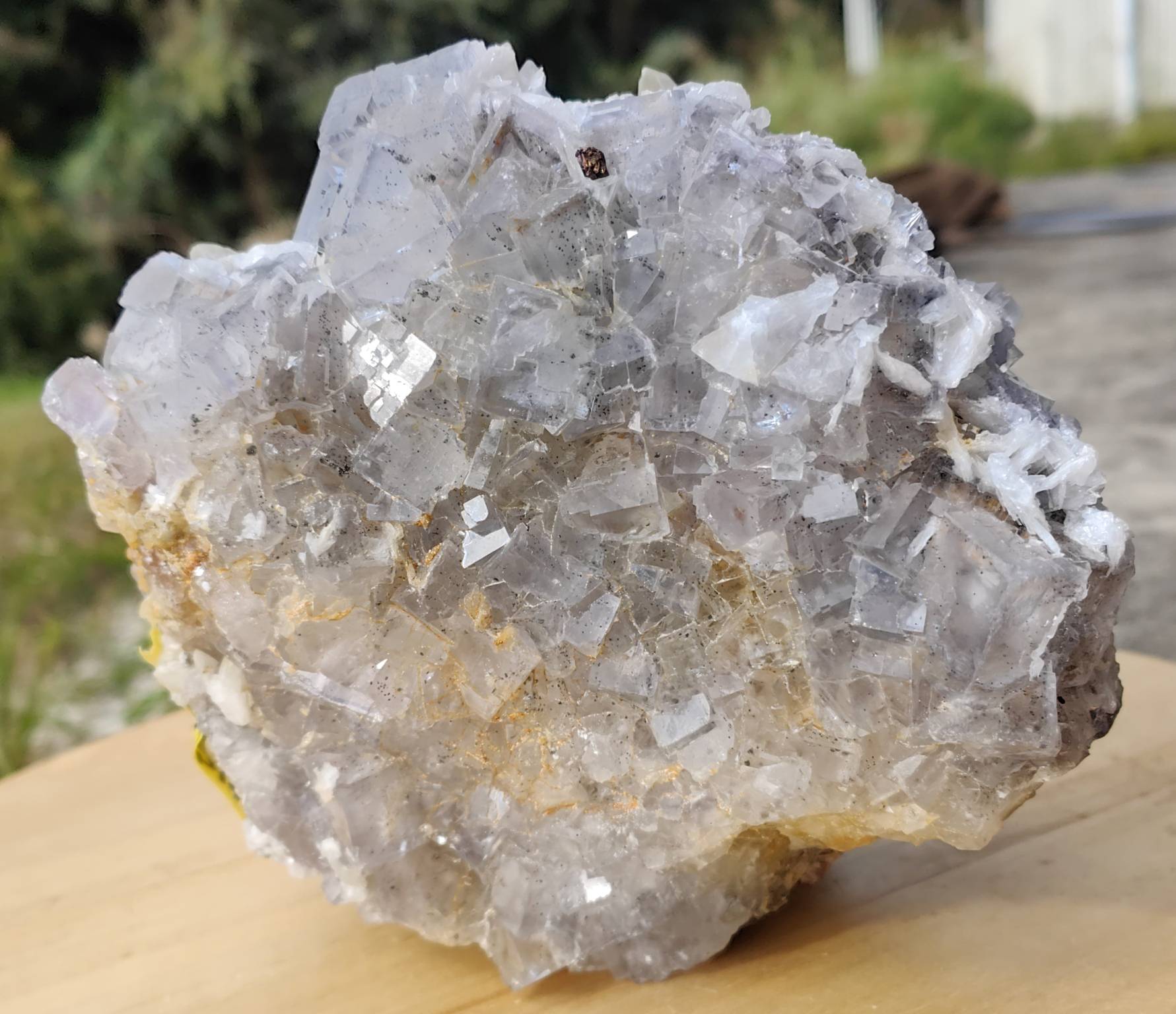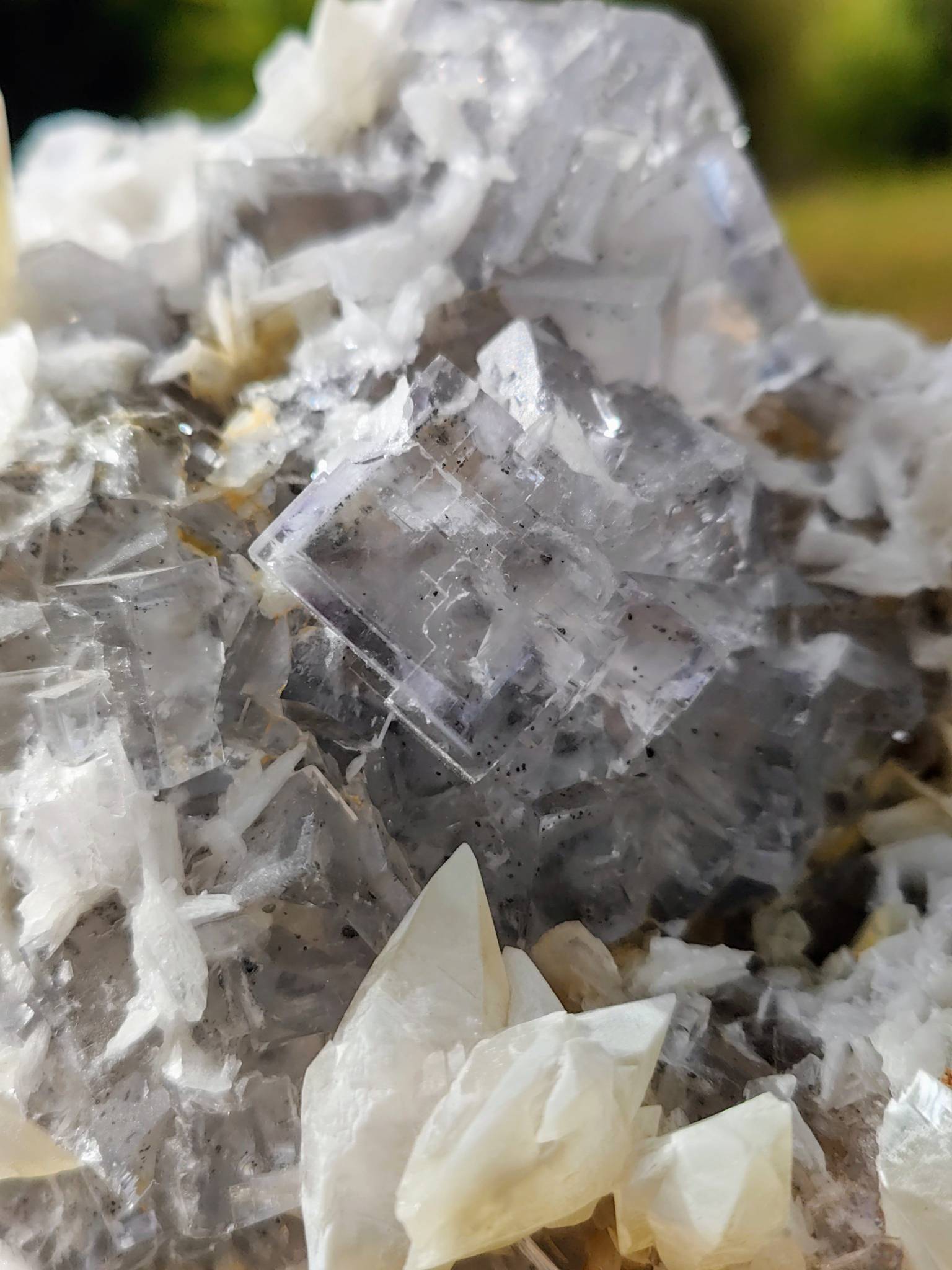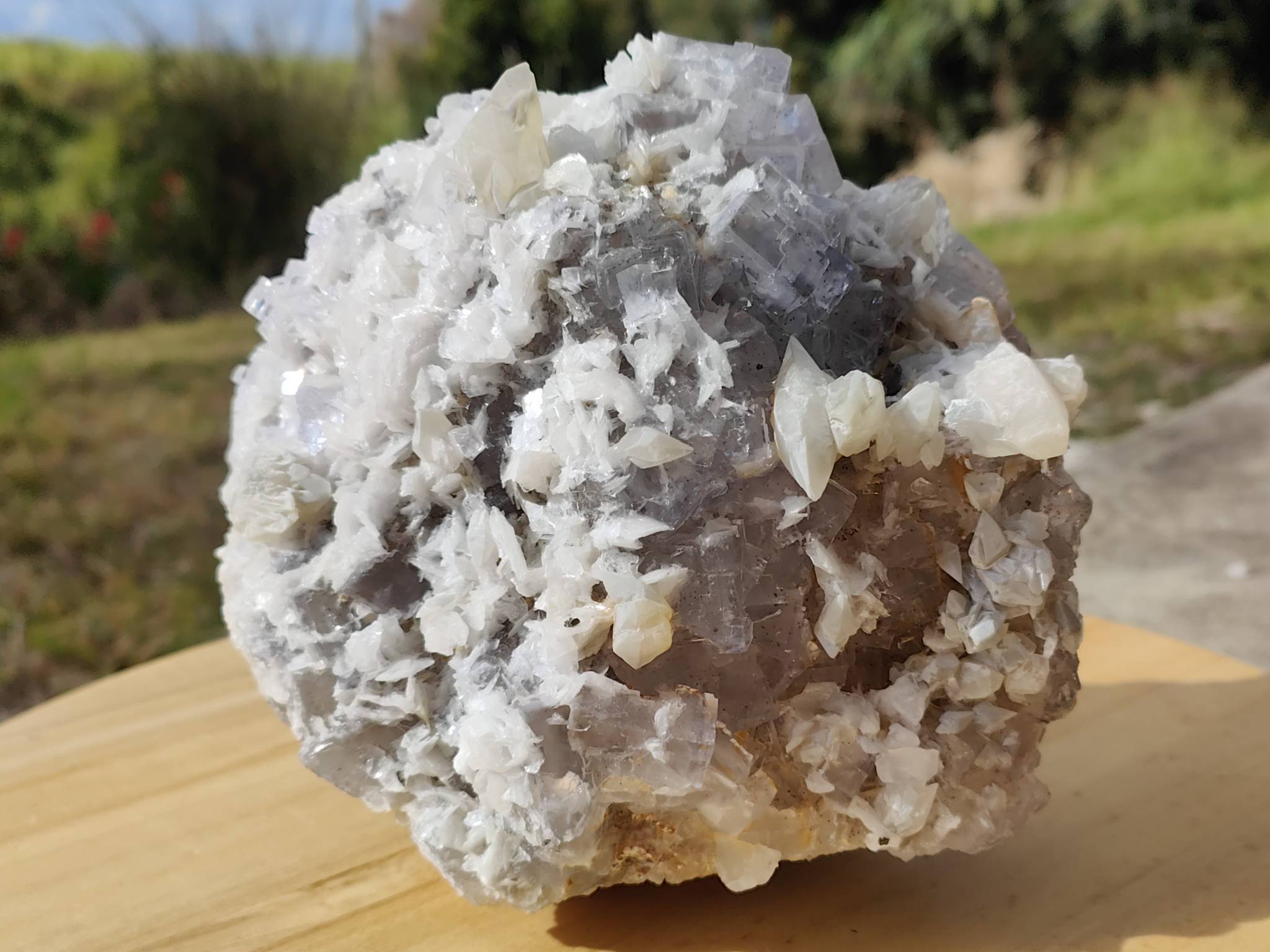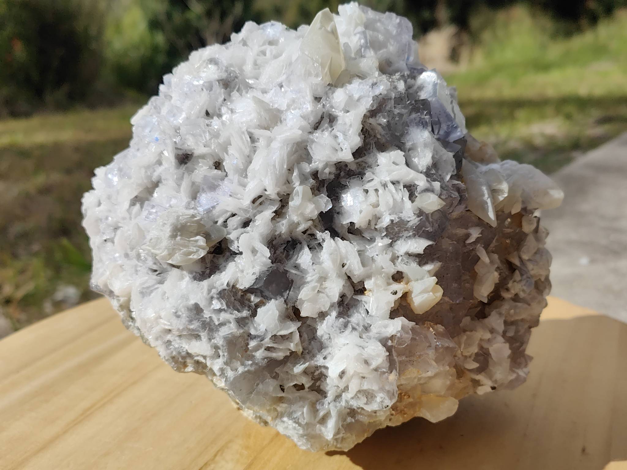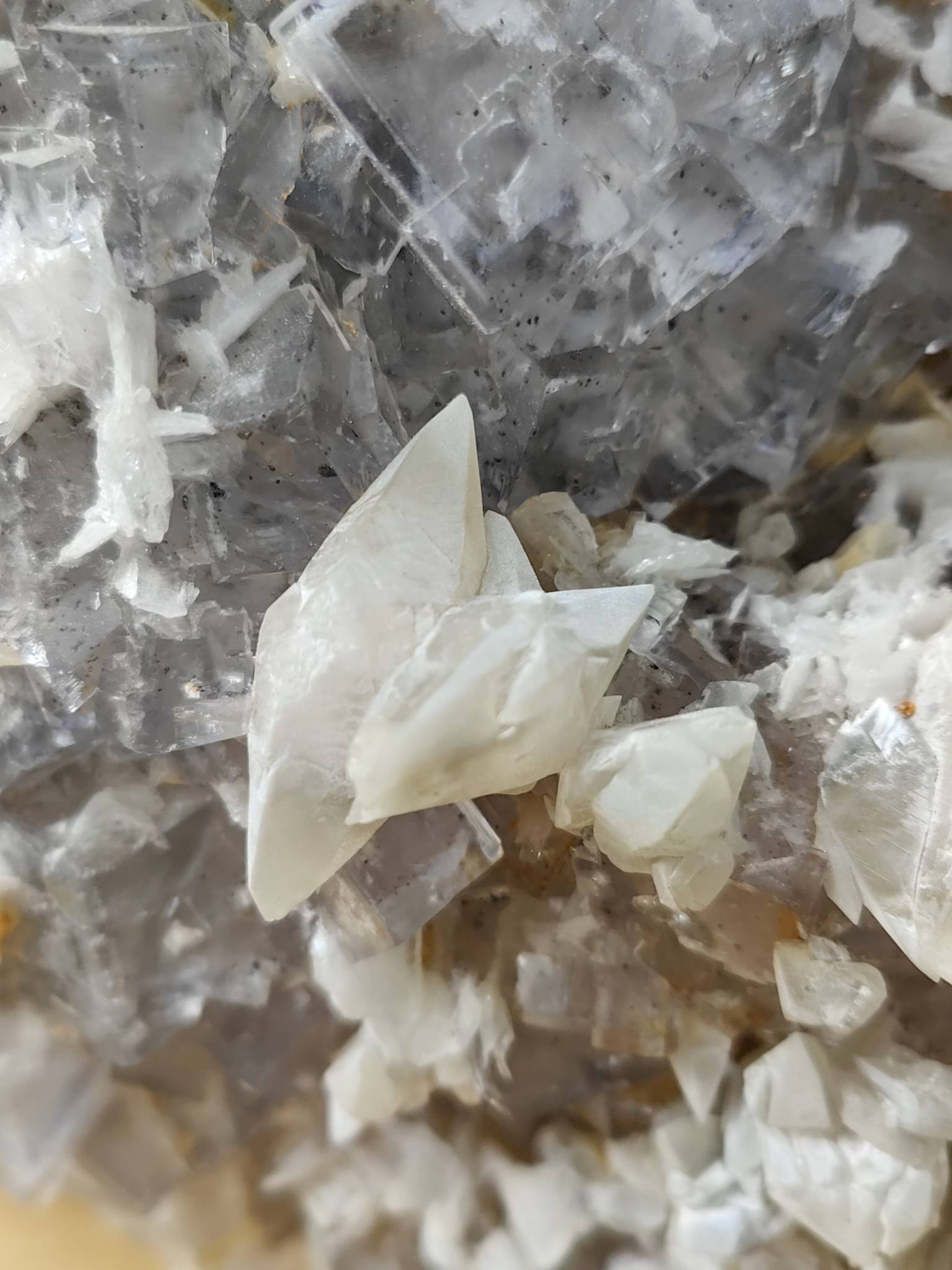 Huge example of Berbes fluorite. This is a pale blue with white barite and dog tooth calcite, some of which are double terminated. Very rare to see a piece like this for sale