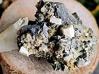 SPEC1090 Large Arsenopyrite with white apatite crystals, with quartz and micro siderite from the highly collectable Panasqueira, Portugal. 78mm $92