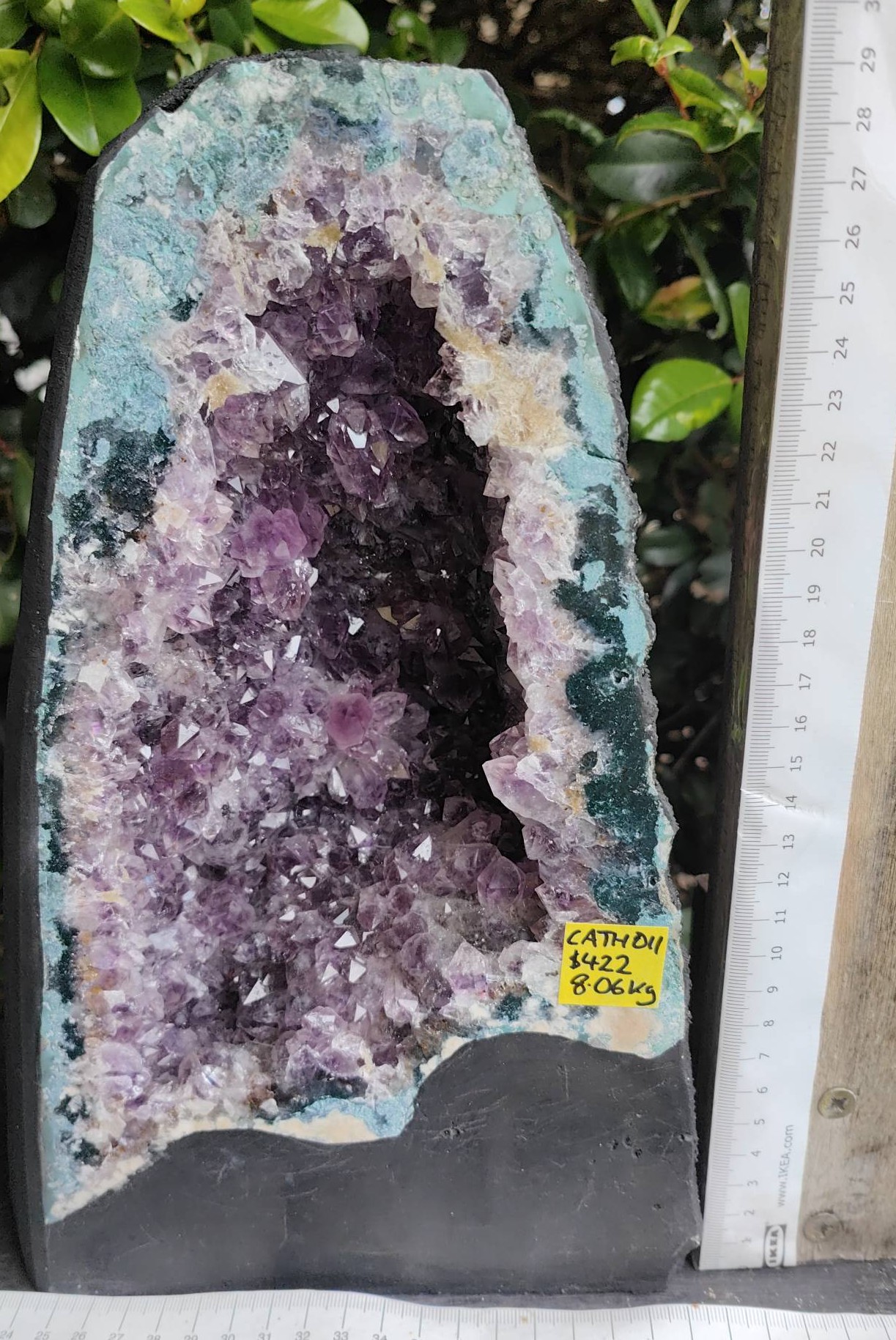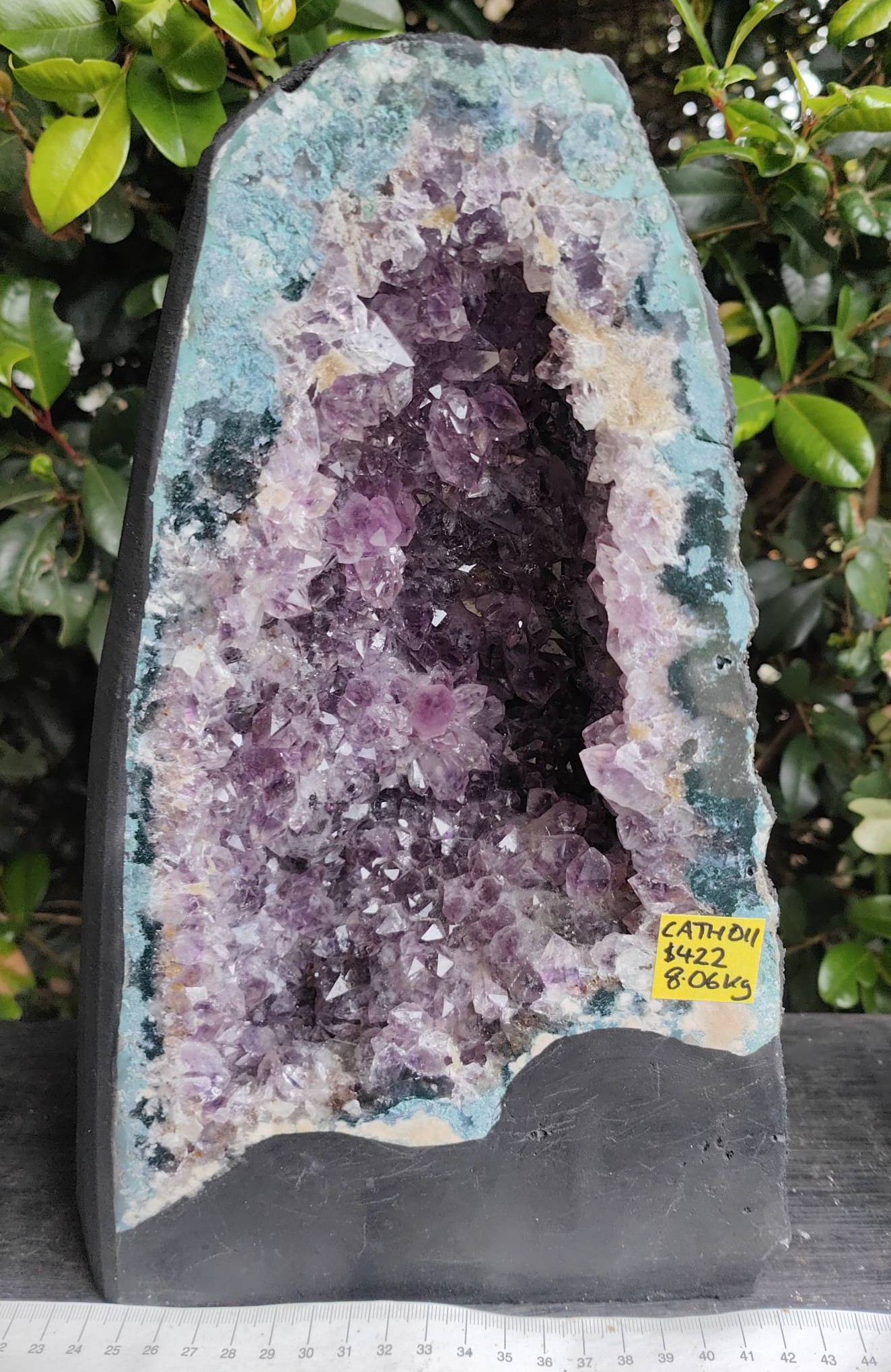 CATH011 8.06kg Amethyst Geode/Cathedral, excellent coloured crystals! 30x18cm $422