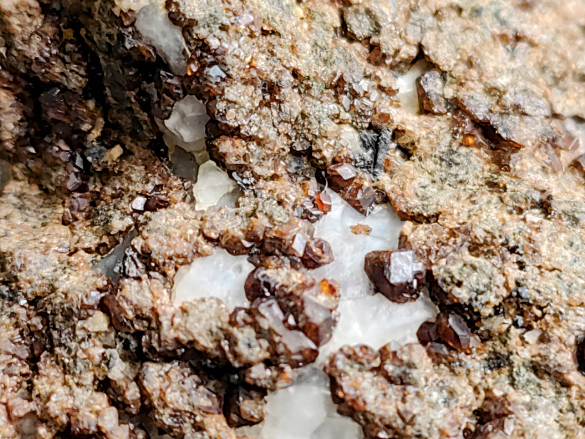 NAT1031 Garnets with Calcite, Morocco 64mm x52mm x 41mm $18