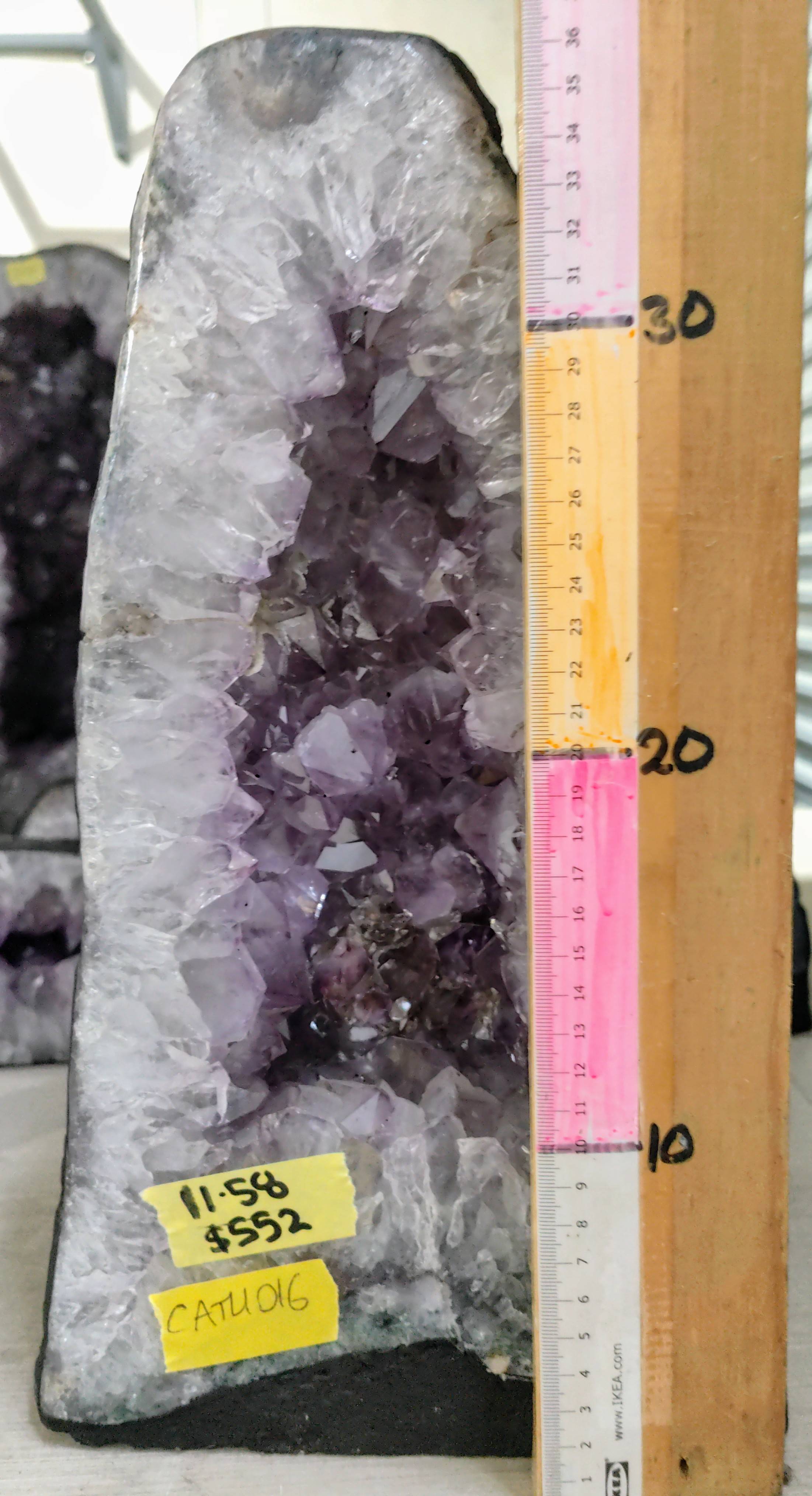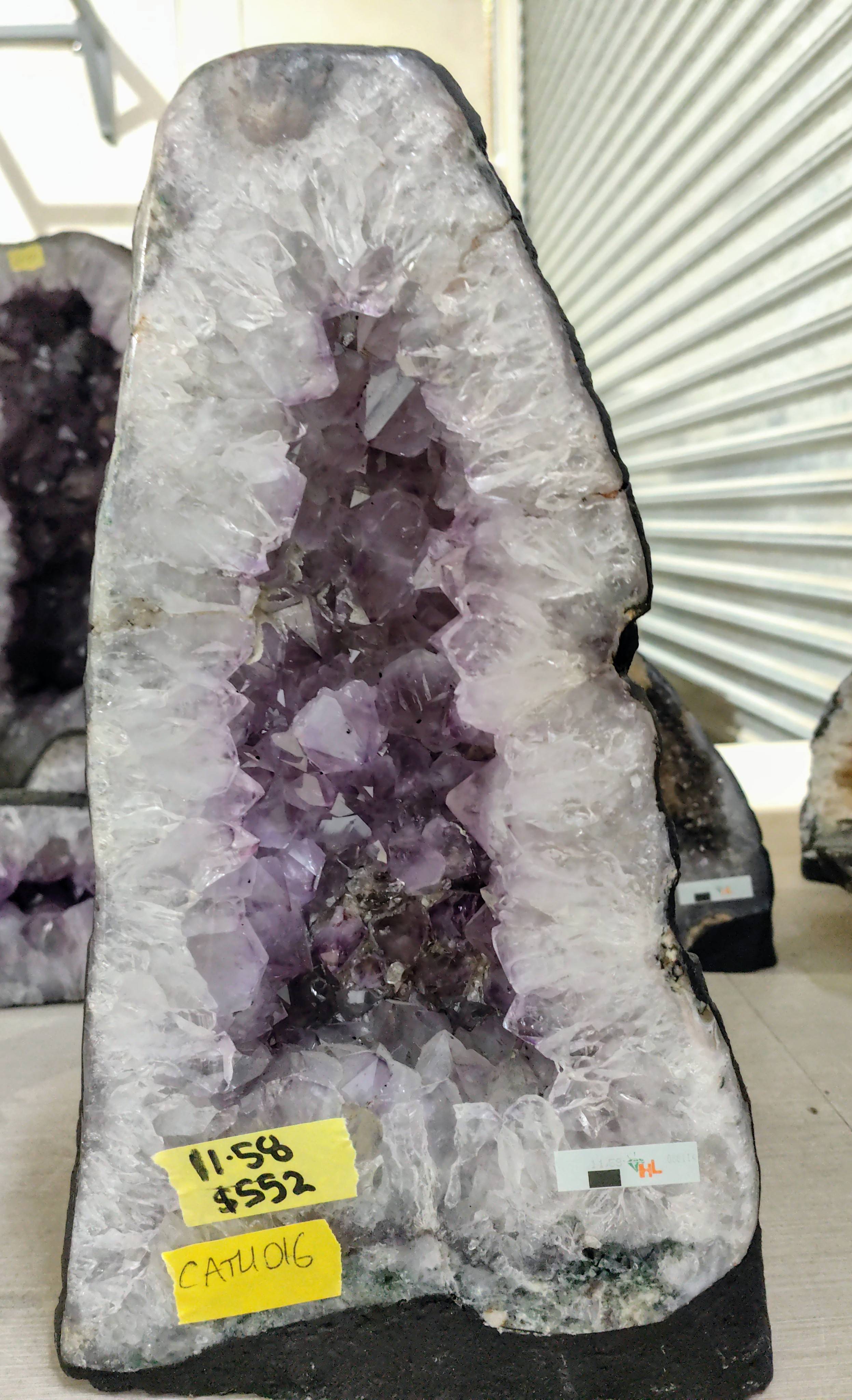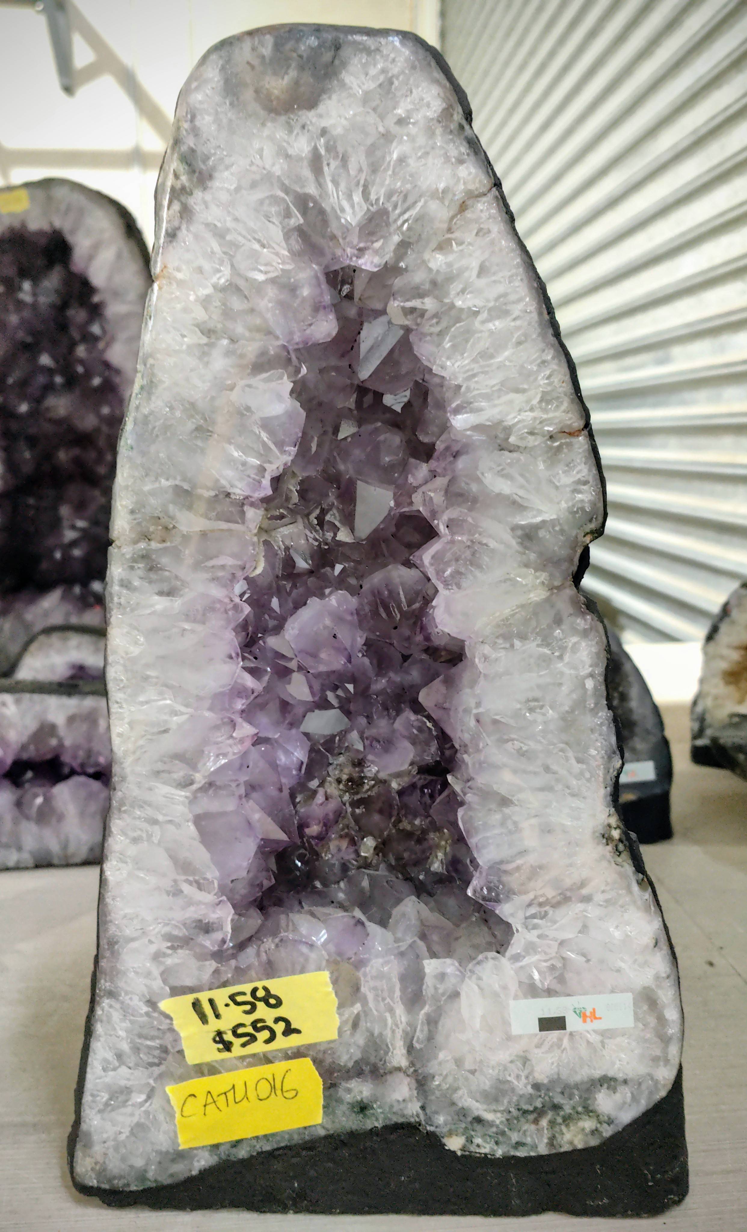 CATH016 11.58kg Amethyst Geode/Cathedral, Larger crystals and ring of lighter quartz around the edge, 38cm tall and 21cm wide $552