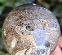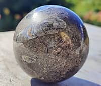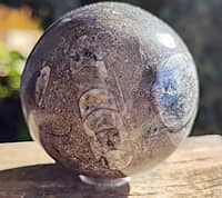 FOS1126 Orthoceras fossil Sphere, black AND brown marble Morocco 60mm $35