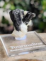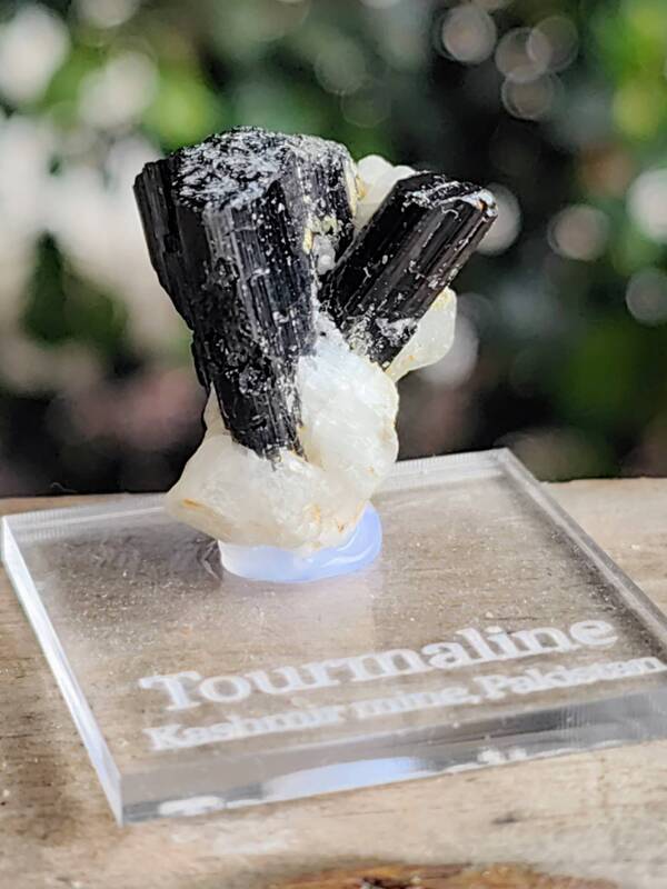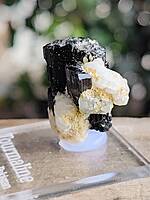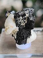 Mount062 Black tourmaline in albite from Kashmir Mine, Pakistan. Mounted on 33mm base $14