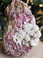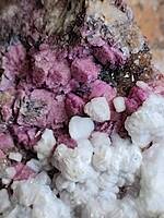SPEC1009 Cobaltian Calcite under White Calcite. Morocco. Good shape to the cobaltian calcite! $55