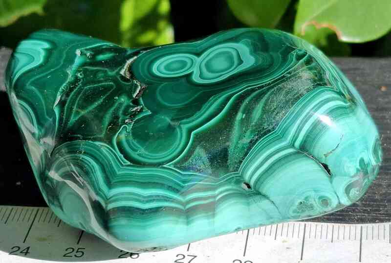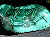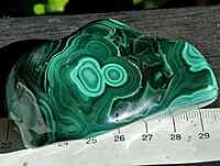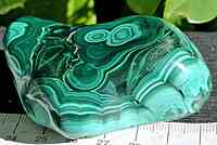 SPEC1012 Polished malachite, great contrast of light and dark green malachite in this polished specimen from the DRC! 74mm $43