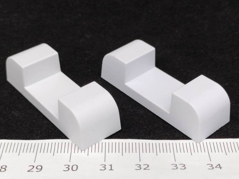 White legs for display cases with stretch film. One pair, use two legs per case. These fit all sizes of the display cases with stretch film.