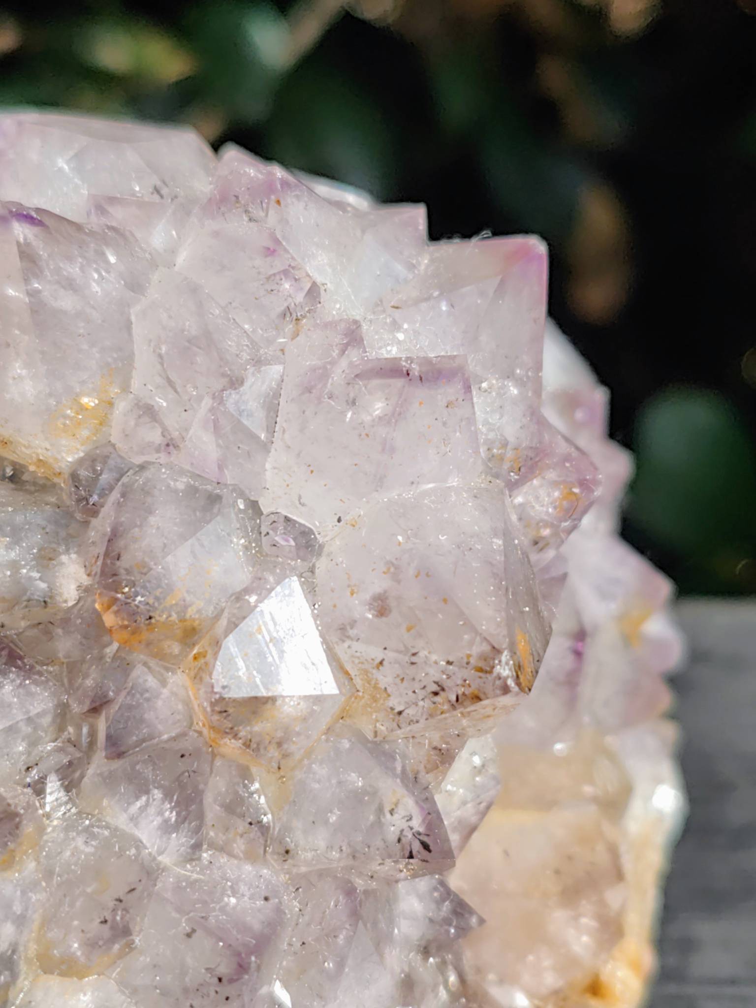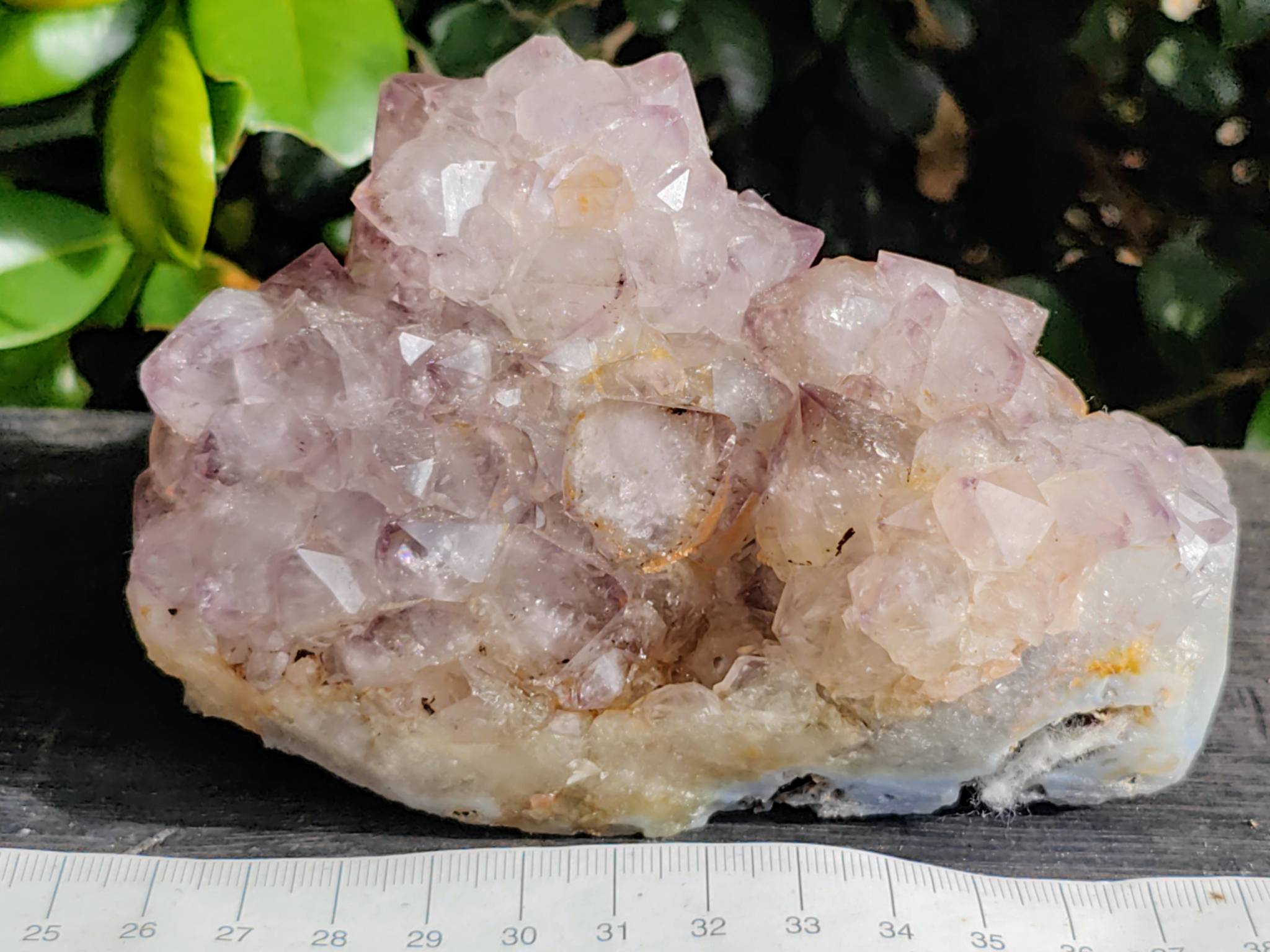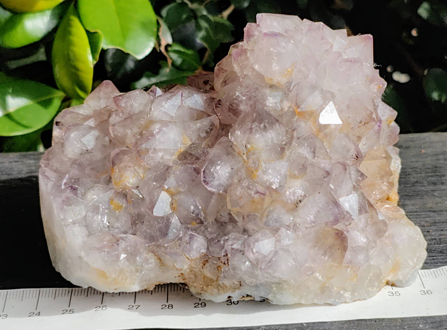 ST1007 "The Sphinx". Indian Amethyst, NO MATRIX. Not brightly coloured, but very clean crystals. 923g/125mm w 76mm h $74
