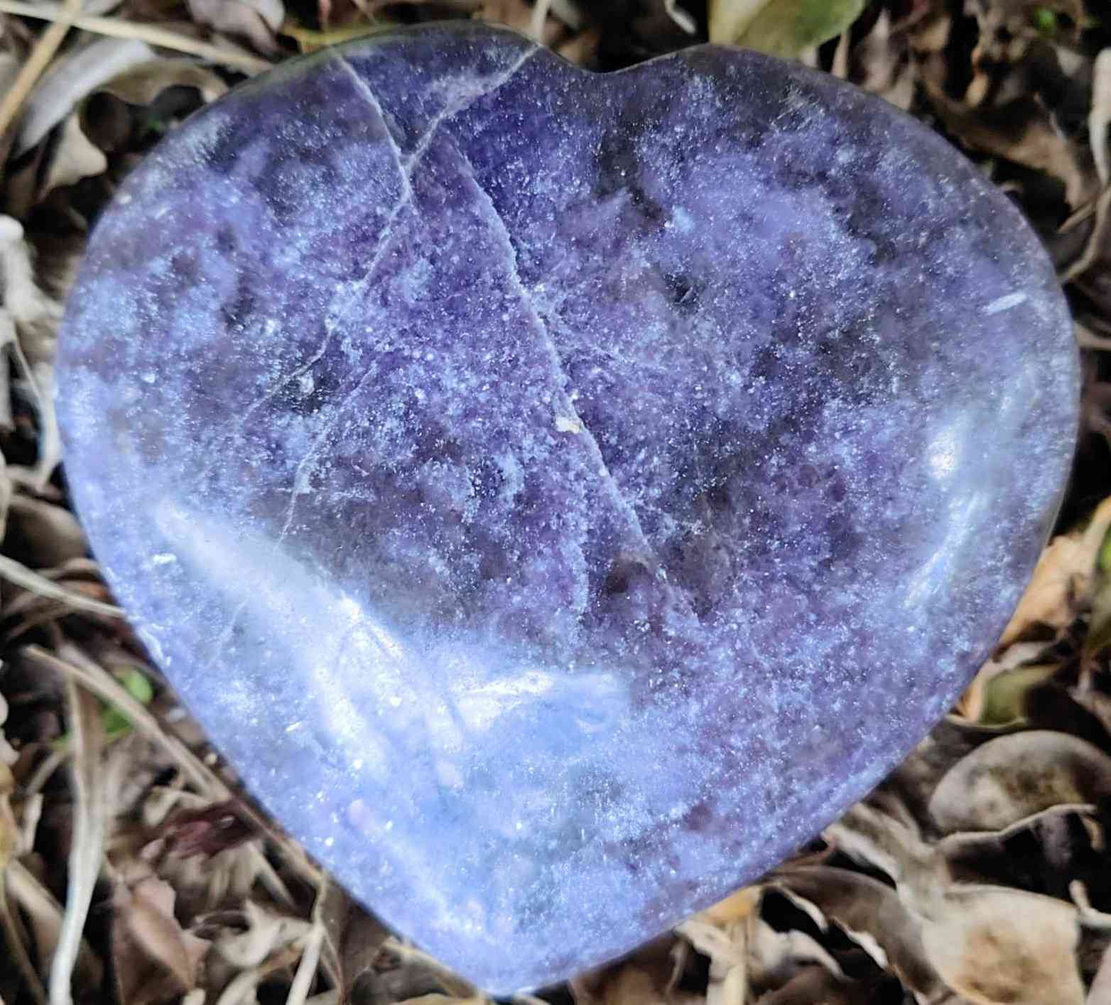 ST3038 Large deep purple Lepidolite heart, with some pink tourmaline. 98mm $51