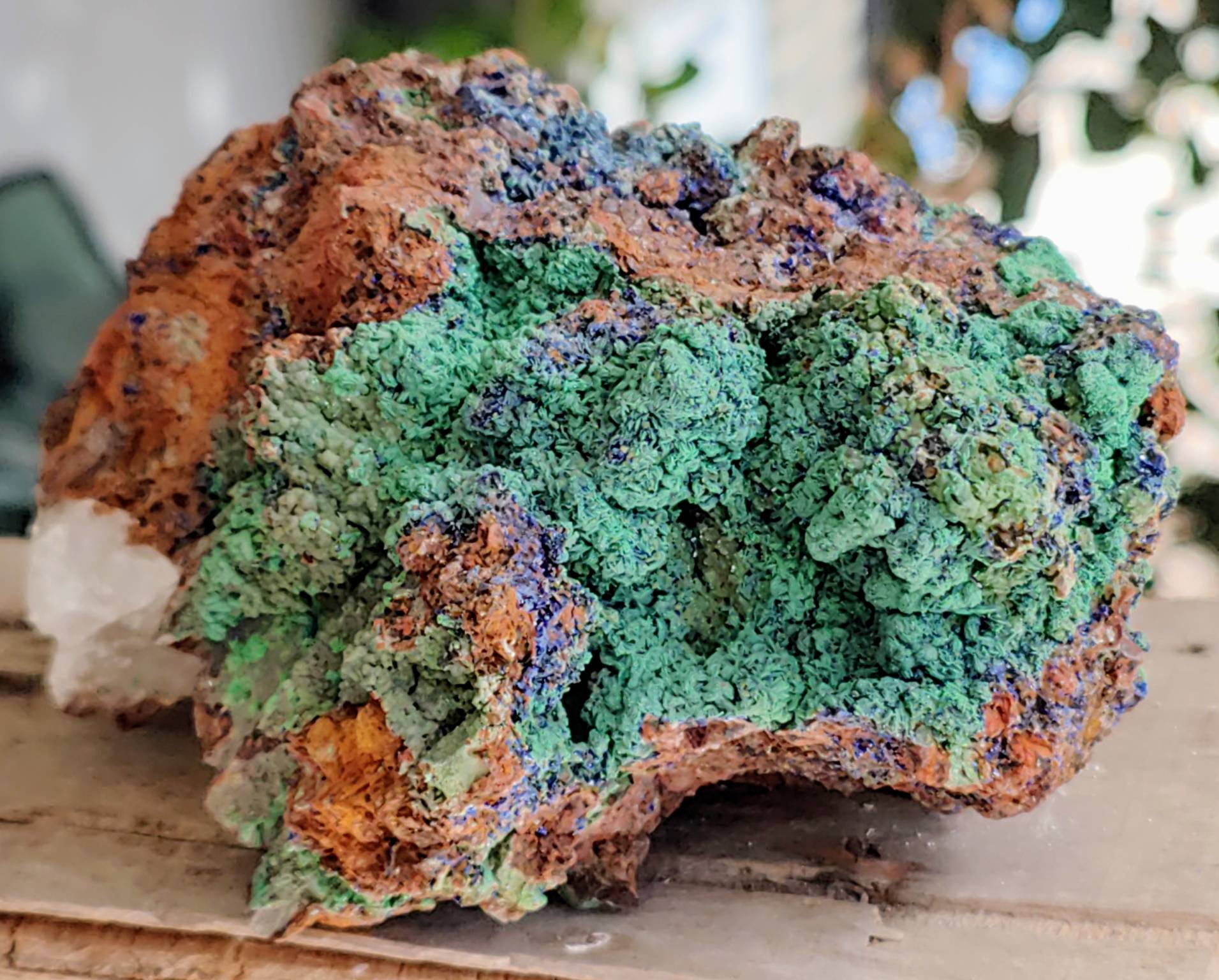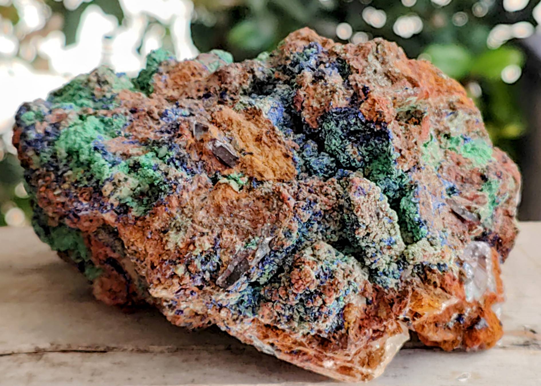 SPEC1035 (VIDEO) Stunning specimen of azurite, conichalcite after azurite on limonite after siderite covered quartz crystals! 116mm wide $120