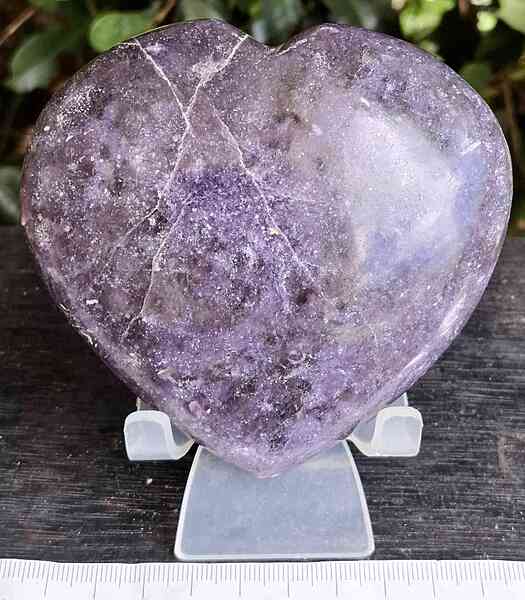 HT1002 Large deep purple Lepidolite heart, with some pink tourmaline (Unicorn Stone). 98mm $51