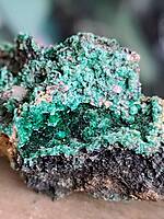 NAT1004 Malachite and rich green Brochantite on matrix from Firefly Mine Halls Peak NSW. 91mm $30