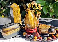 SET8. Tiger Eye Set: Generator 58mm, egg 40mm, X-Large hawks eye tumble, tree 55mm, small heart 32mm, 2cm mushroom, small red tigers eye tumble ans 8mm mixed tigers eye bracelet. RRP $48 Now $40