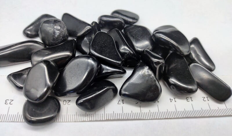 Shungite is a rare, black, lustrous mineral found in the Karelia region of Russia. It is composed of mostly carbon (98-99%) and small amounts of minerals such as silicate, pyrite. Shungite a unique form of carbon called fullerenes, which are made up of 60 or more carbon atoms arranged in a spherical structure and are used for water purification.