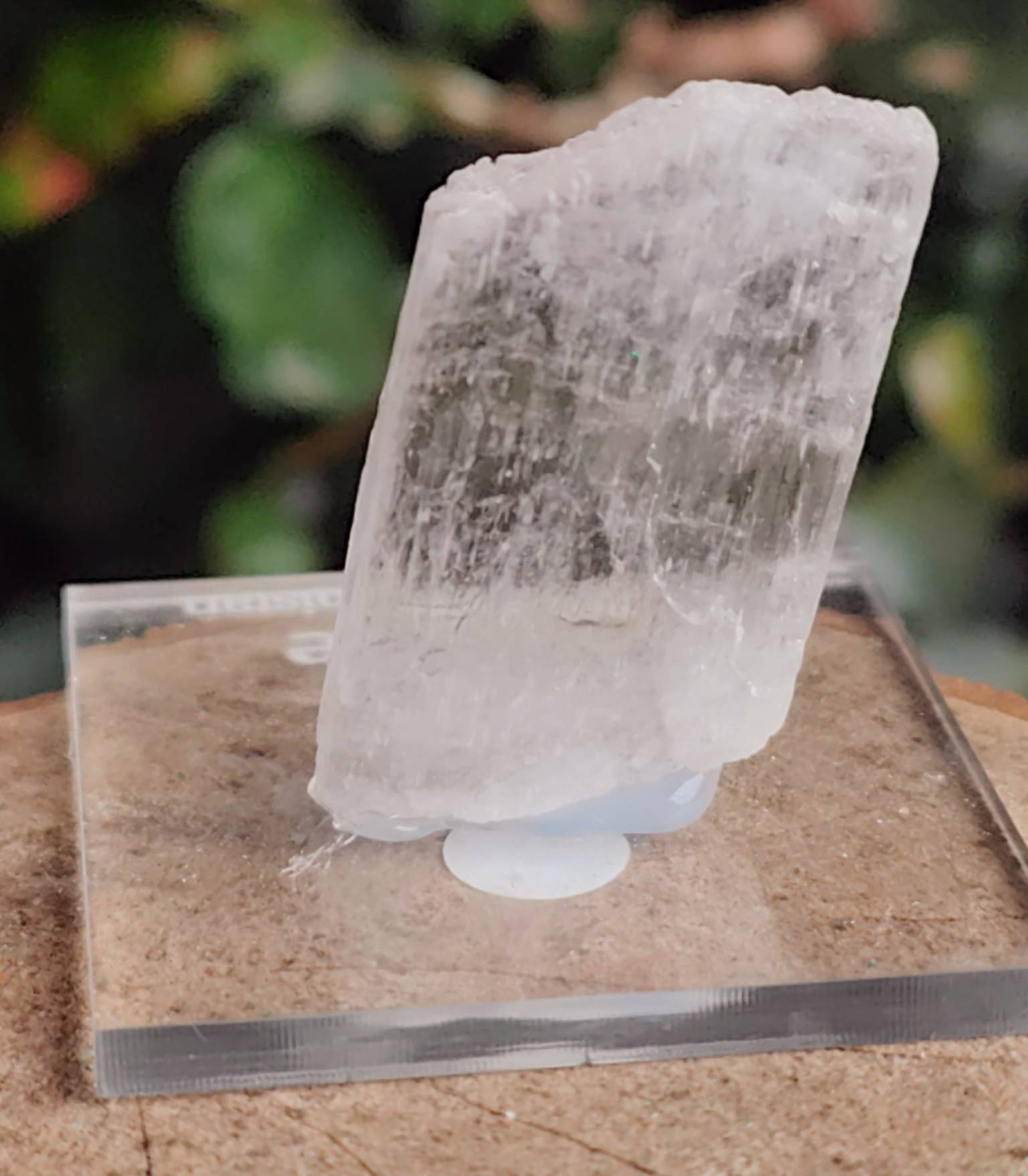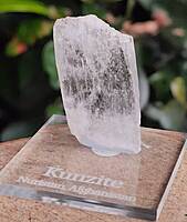 Mount075 Pink Kunzite Crystal, 32mm x 20mm. Afghanistan. On acrylic base with etched location $42