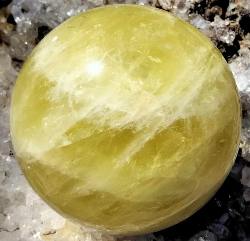SPH1019 Large citrine / lemon quartz sphere. 646g 78mm $71