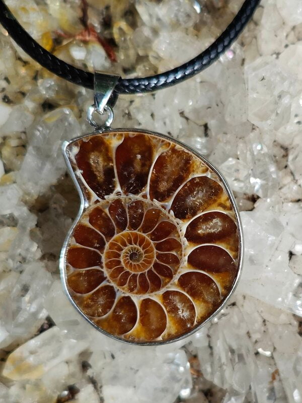 FOS1040 Fossil Ammonite pendant with vegan leather necklace, Madagascar