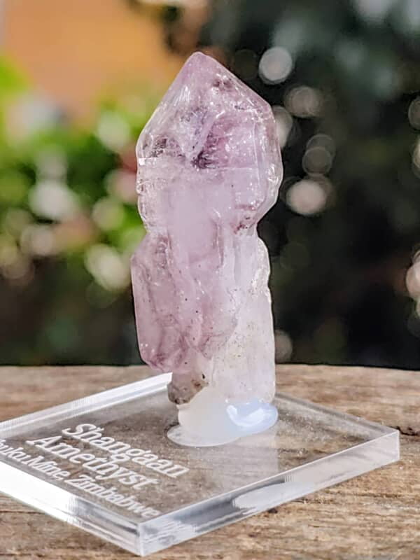 Shangaan amethyst from Zimbabwe Mounted on acrylic base with low temp glue