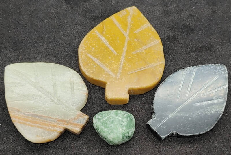 "Tree and Leaf" gift set - 3 leaves (Serpentine, and Jasper) and Tree Agate tumble
