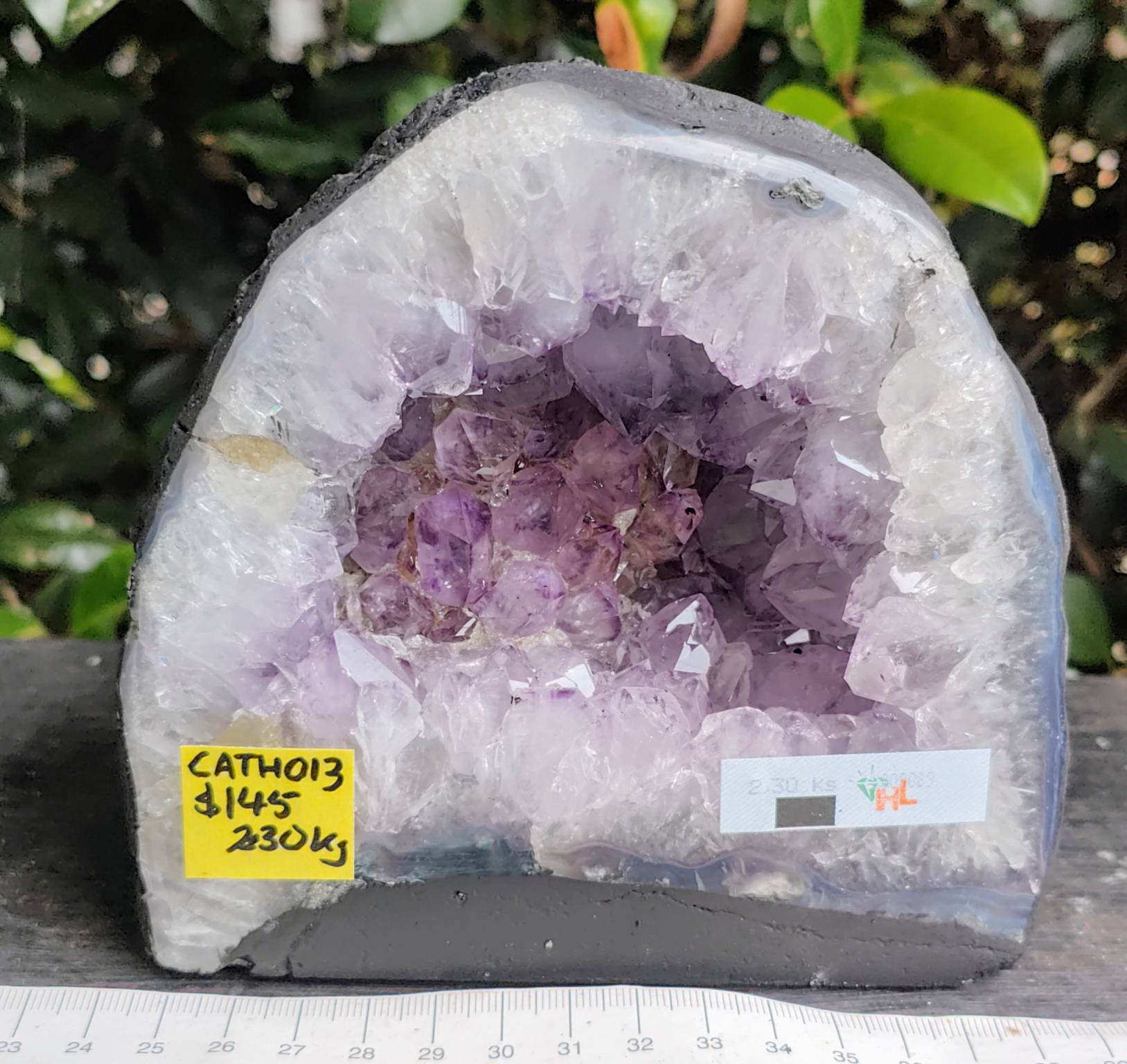 CATH013 2.30kg Amethyst Geode/Cathedral, Nice colour with attractive cave 13.5cm tall x14cm wide $145