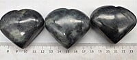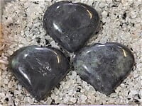 Grey Feldspar hearts Most have silver sheen - some have deep blue labradoescence Most 50-55mm but some minor variation.