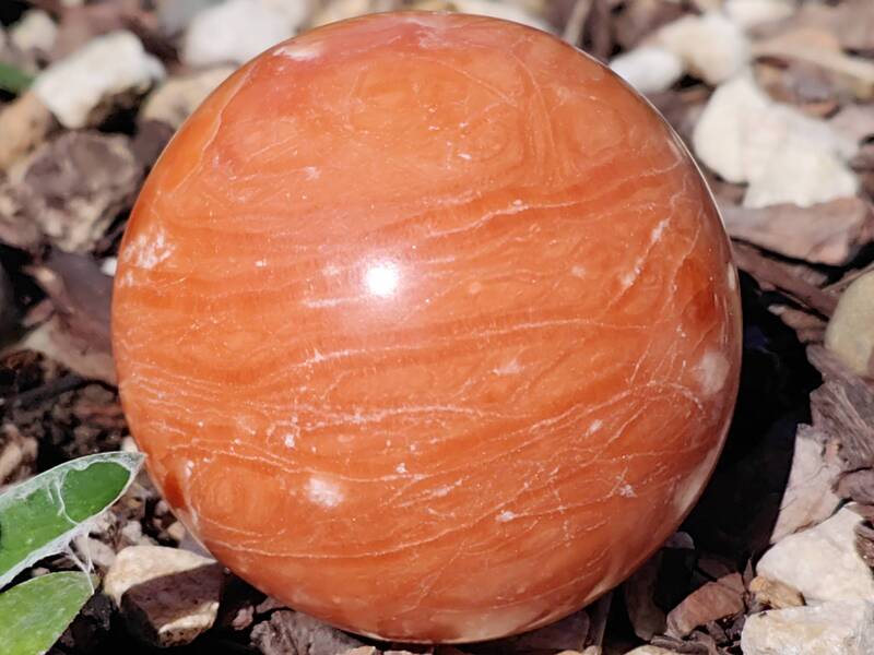 ST2003 Red Gypsum sphere with patterns of orange/red. Red Gypsum from Madagascar 72mm $42