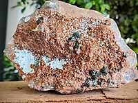 Malachite, Chrysocolla on Siderite WITH Cobaltian Calcite on matrix, South Africa.
