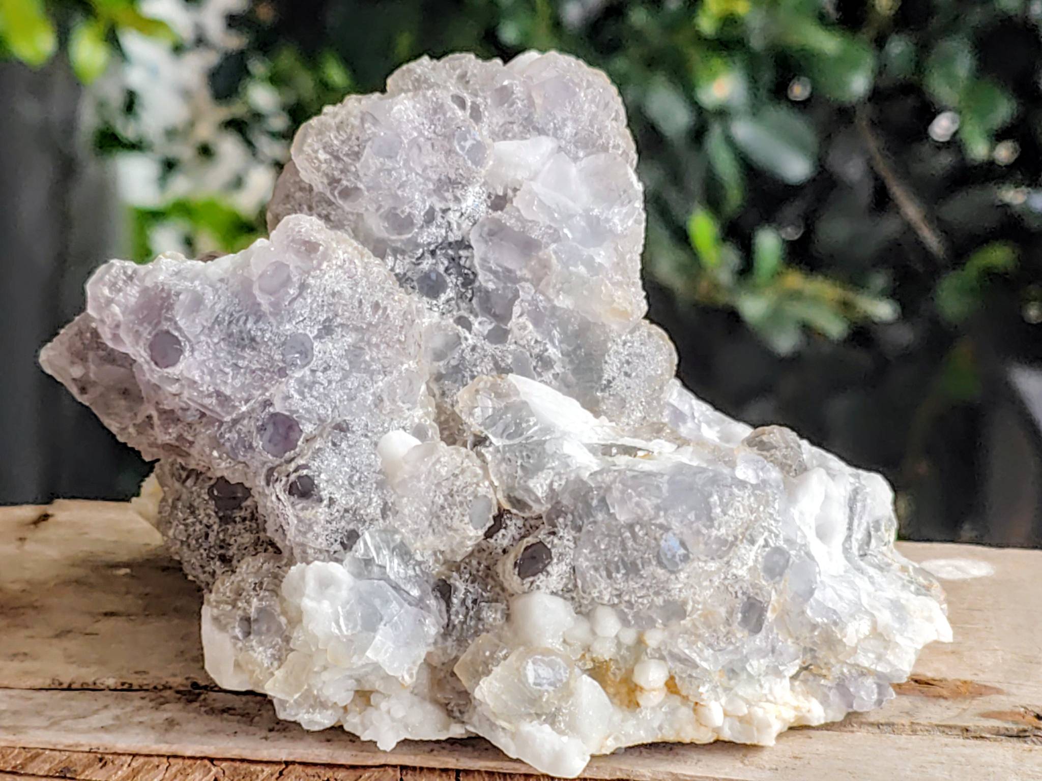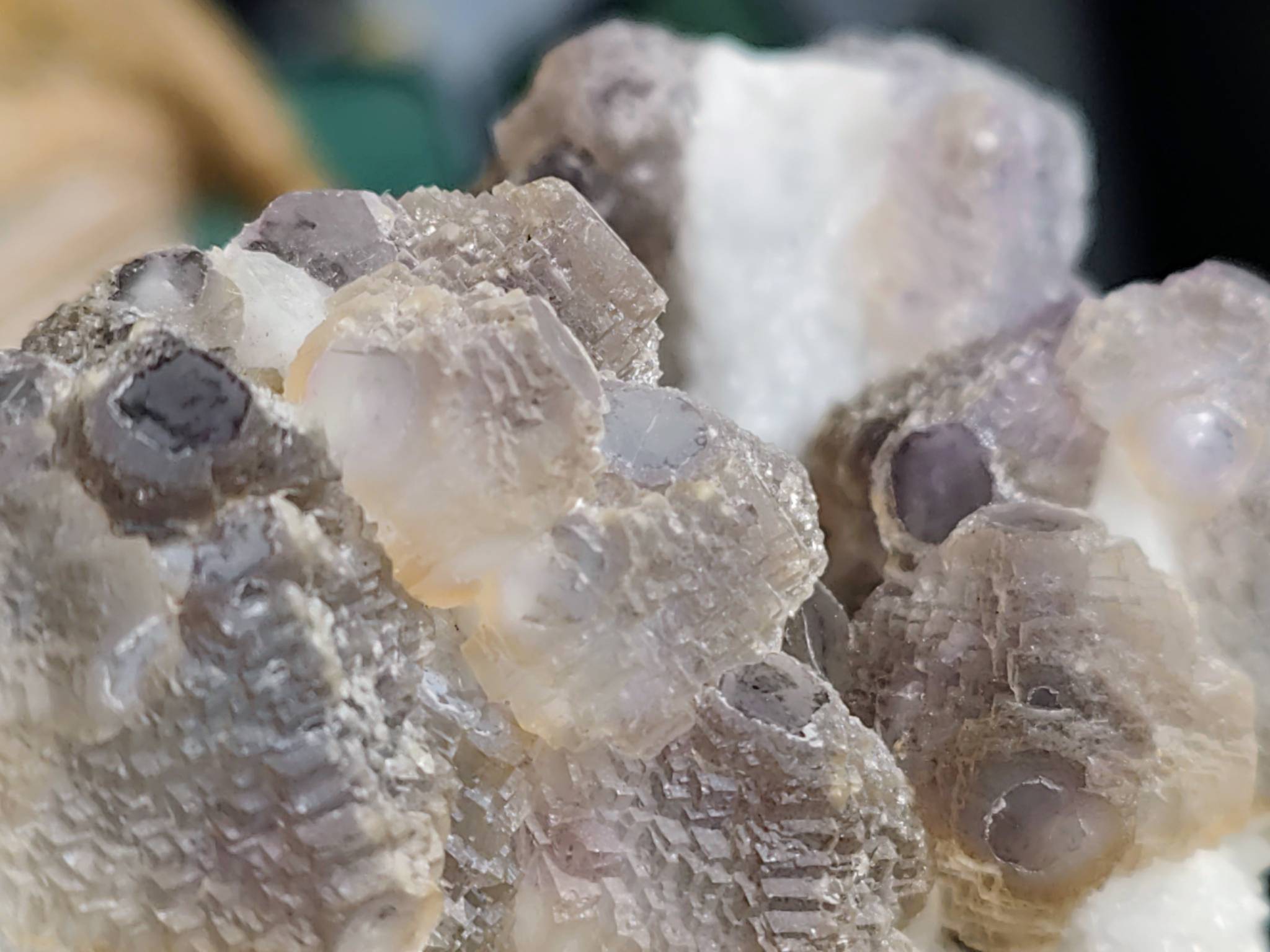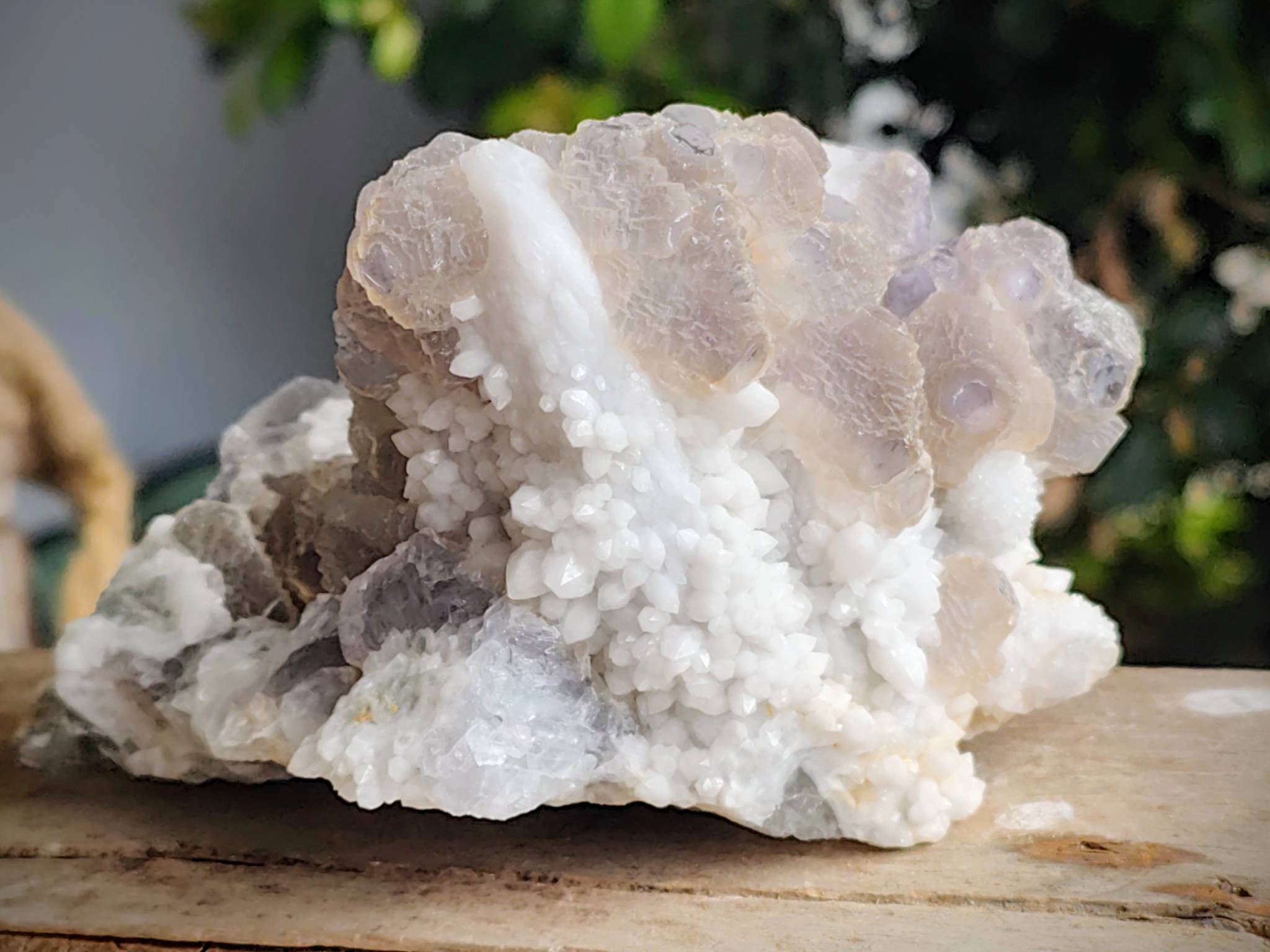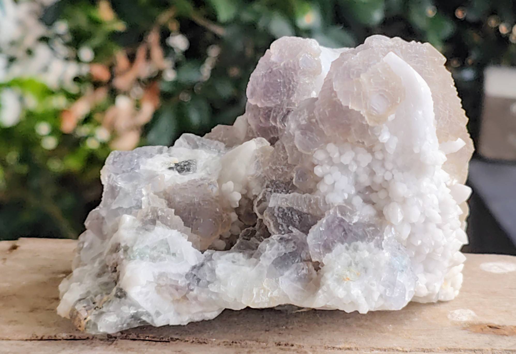 Blue Fluorite with yellow fluorite over Candle Quartz, Inner Mongolia. Large specimen 120mm base and 75mm high. UV reactive with phosphorescence