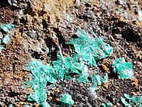 Malachite with siderite from Mineral Hill, New South Wales, Australia. We received this from an old collection labelled as Atacamite but I suspect it is actually malachite.