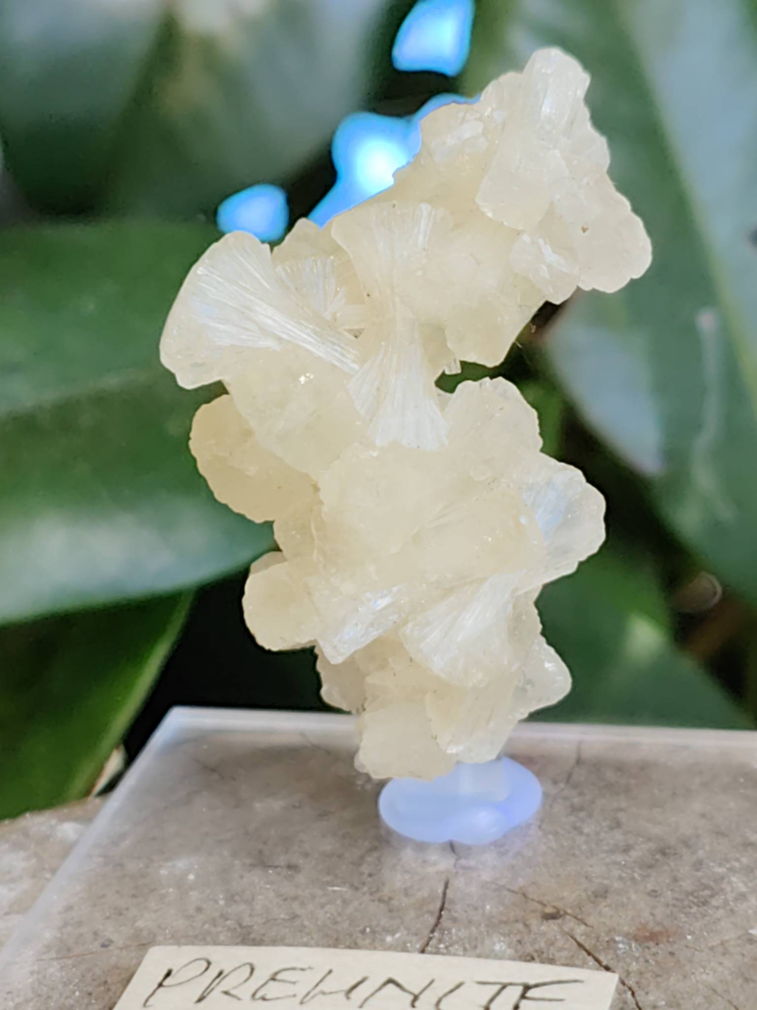 Mount095 Mounted prehnite cluster. well formed clean prehnite crystals. Unknown location. 38mm specimen mounted on 40mm base. $25