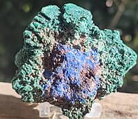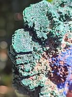 Very large pseudomorph of malachite after azurite still with azurite at the centre. Sir Dominick Mine, Arkaroola district, South Australia 64mm $165