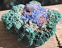 aus008 (VIDEO) Very large pseudomorph of malachite after azurite still with azurite at the centre. Sir Dominick Mine, Arkaroola district, South Australia 64mm $165
