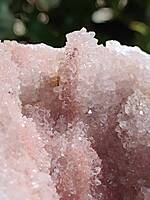 SPEC1004 (VIDEO) Moroccan pink amethyst. This is a very pale purple amethyst on orange chalcedony giving it a pink colour AND has natural iridescent crystals and stalactites!! 90mm $50