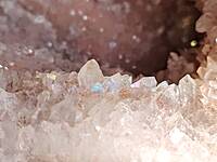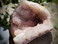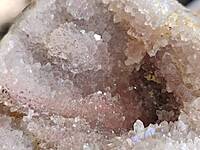 Moroccan pink amethyst. This is a very pale purple amethyst on orange chalcedony giving it a pink colour AND has natural iridescent crystals and stalactites!! 90mm