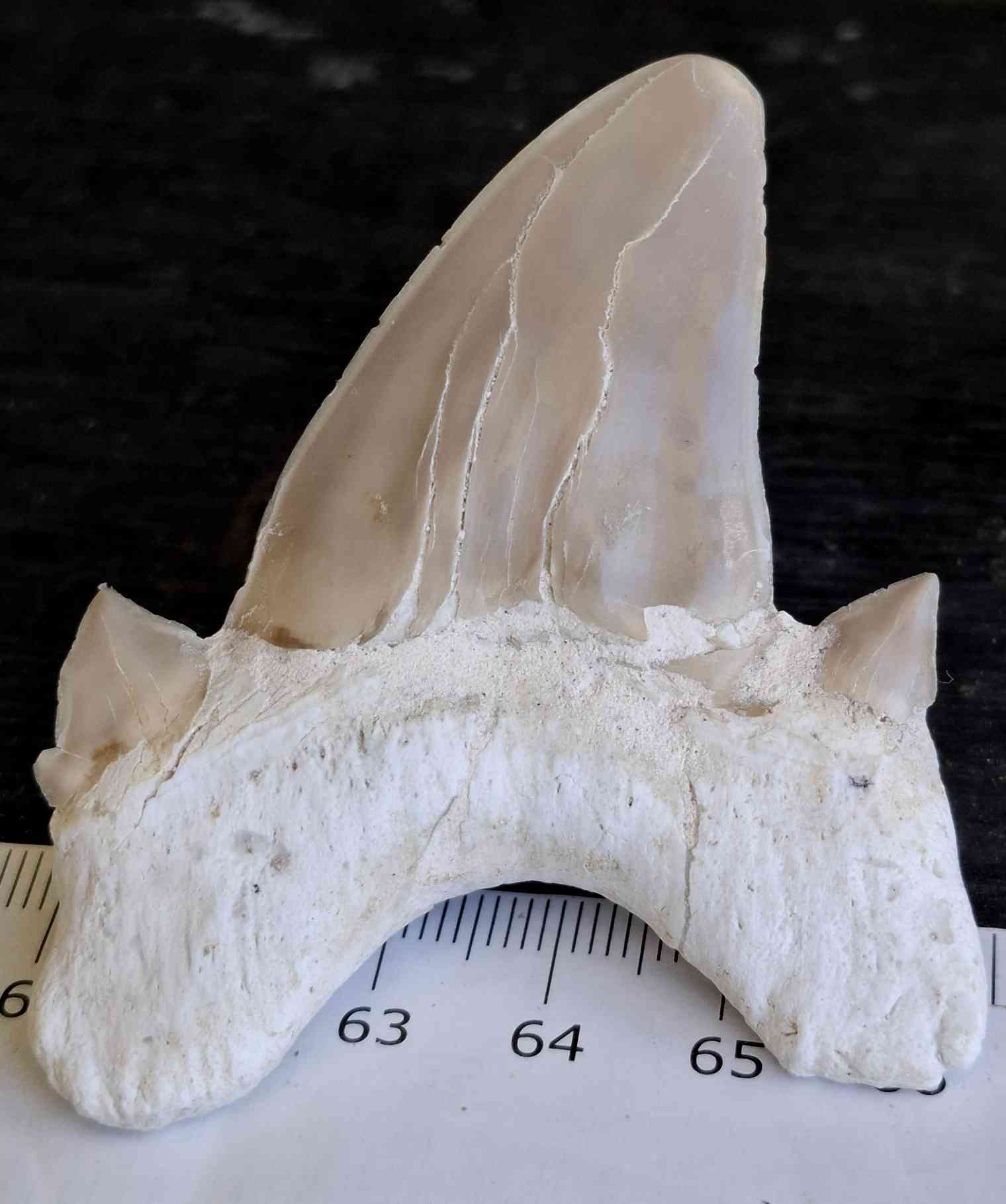 FOS1021 LARGE Otodus obliquus fossil shark tooth. 50myo Morocco 69mm $50