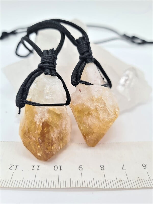 Traditional Citrine (Amethyst) in cord necklace. Nice chunky unisex pieces. Metal free.